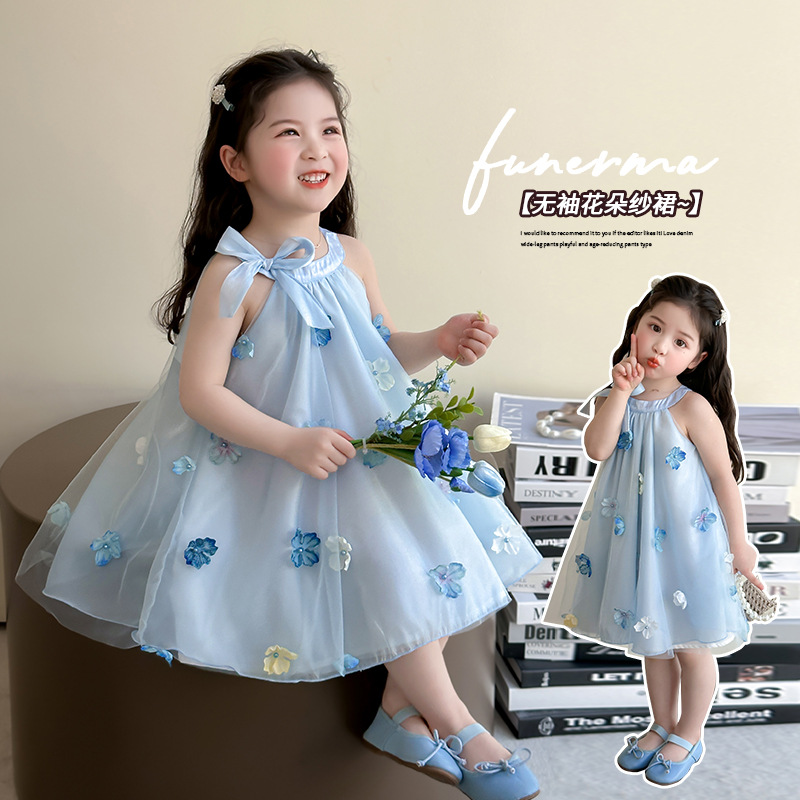 소녀 원피스 여름 2025 새로운 어린이 세련된 메쉬 공주 원피스 여름 유행 카미솔 스커트스토어 가기
