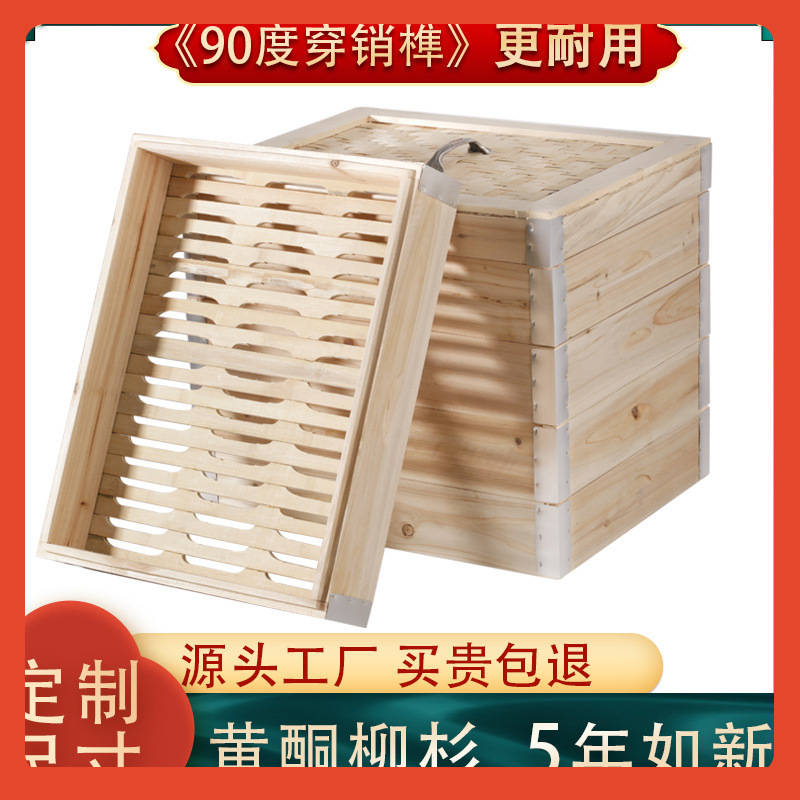 □ 모모거 찜빵 가게 찜통 대나무 바닥 50*40 팩 아침 식사 스낵 찜통 찐빵 상업용 전나무 사각 찜통