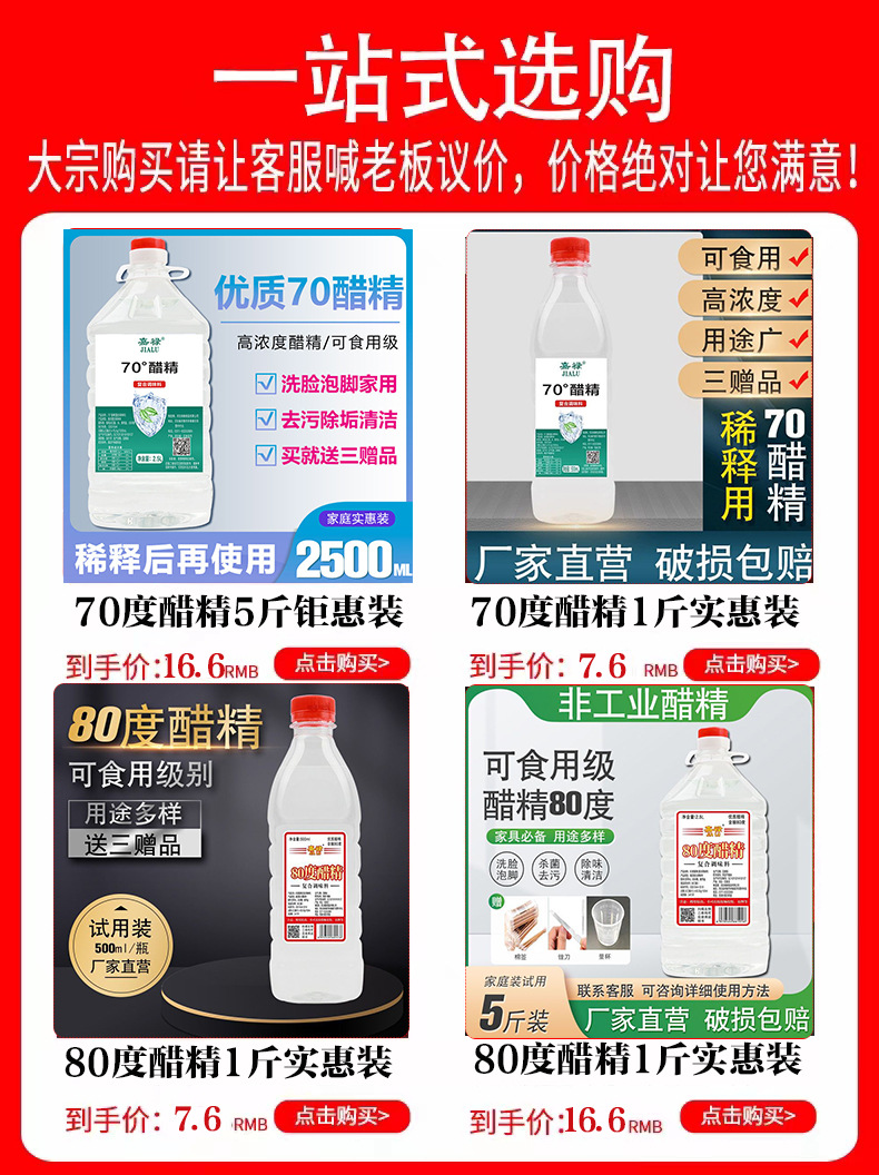 70 도 상하이 높은 식초 에센스 식용 고 농도 화이트 식초 워시 페이스와 발 워시 5kg 팩 우표스토어 가기