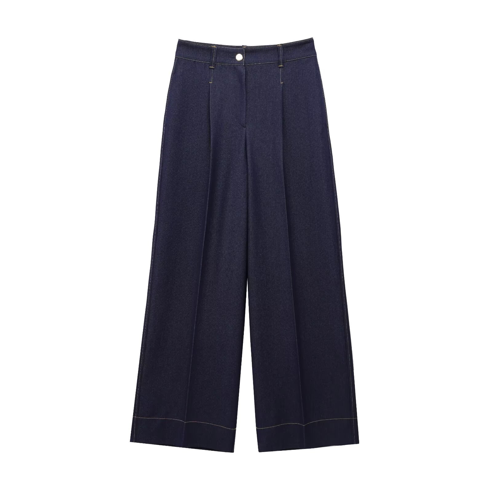 UC & ZA 국경 간 AliExpress 여성용 유럽과 미국 스타일의 높은 허리 대비 컬러 라인 장식 느슨한 캐주얼 와이드 레그 팬츠 1478692스토어 가기