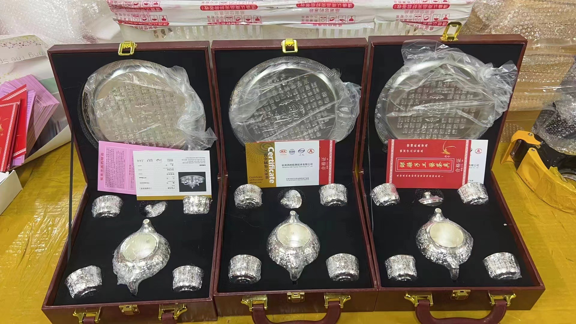 □ 신제품 Baifu 차 세트 가정용 실버 주전자 세트 999 순은 차 컵 세트 실버 도금 Baifu 차 세트 5 피스 세트 공장스토어 가기