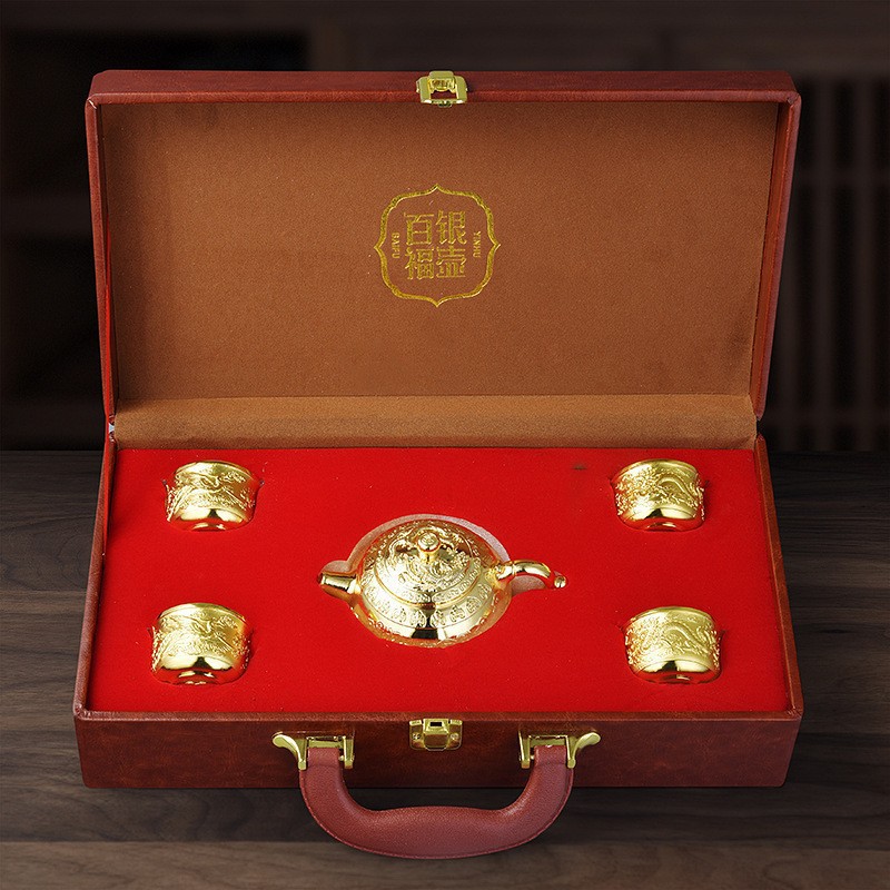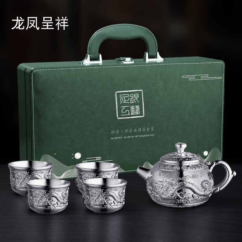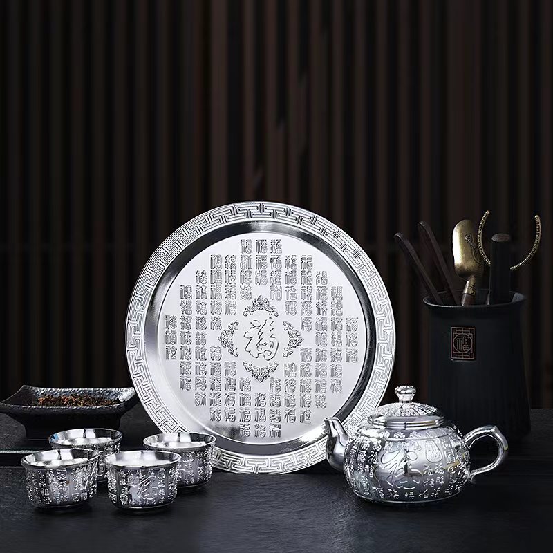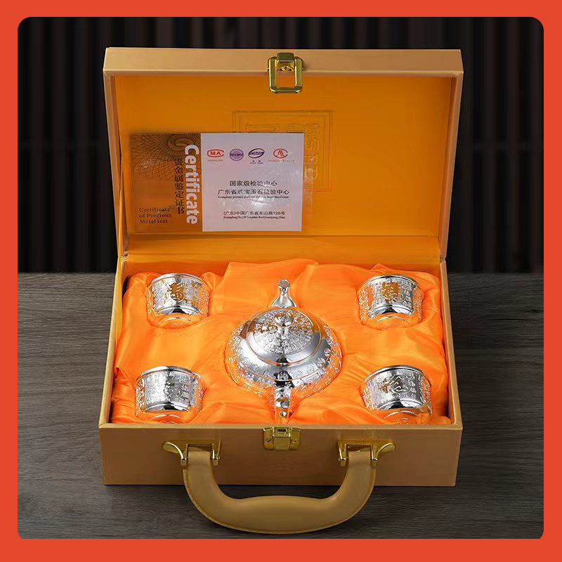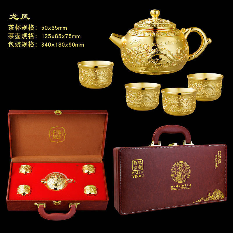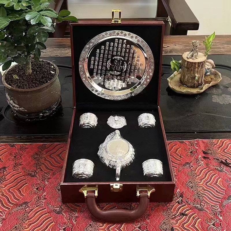 □ 신제품 Baifu 차 세트 가정용 실버 주전자 세트 999 순은 차 컵 세트 실버 도금 Baifu 차 세트 5 피스 세트 공장