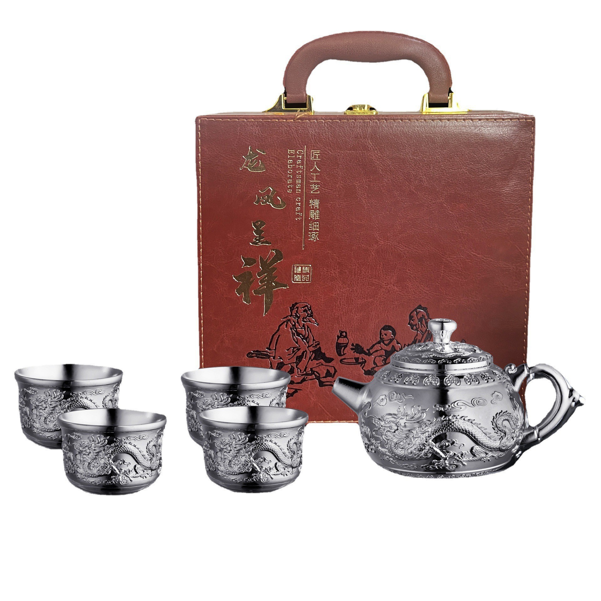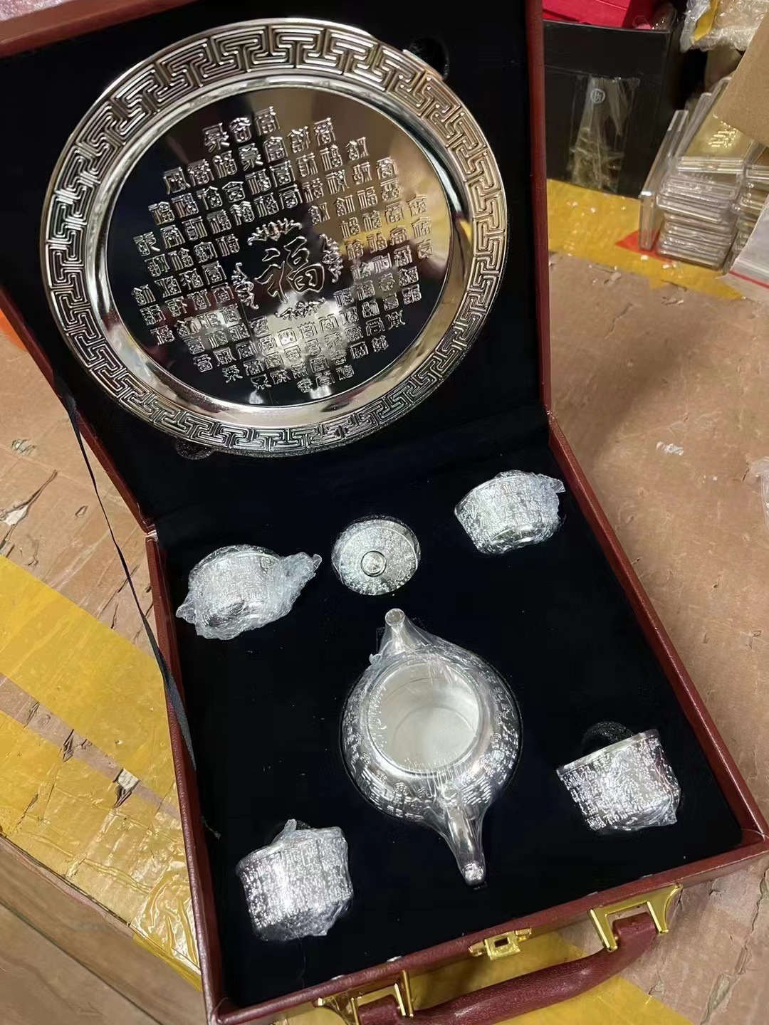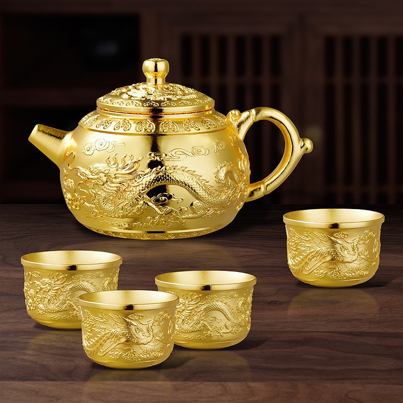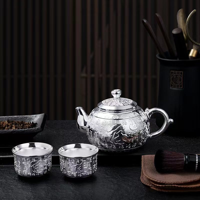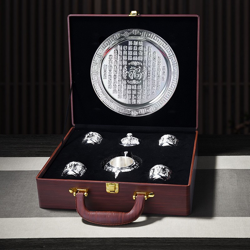 □ 신제품 Baifu 차 세트 가정용 실버 주전자 세트 999 순은 차 컵 세트 실버 도금 Baifu 차 세트 5 피스 세트 공장