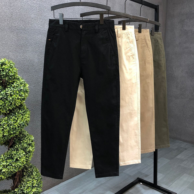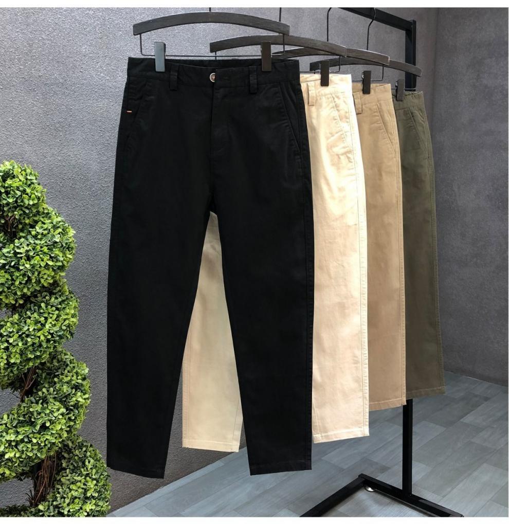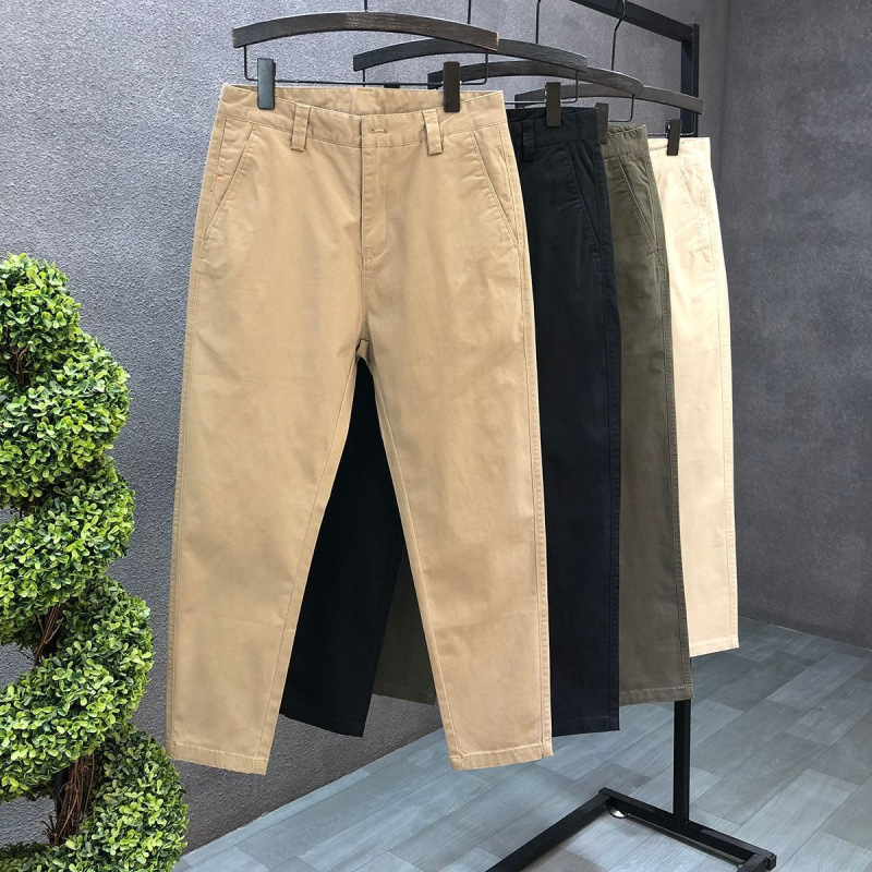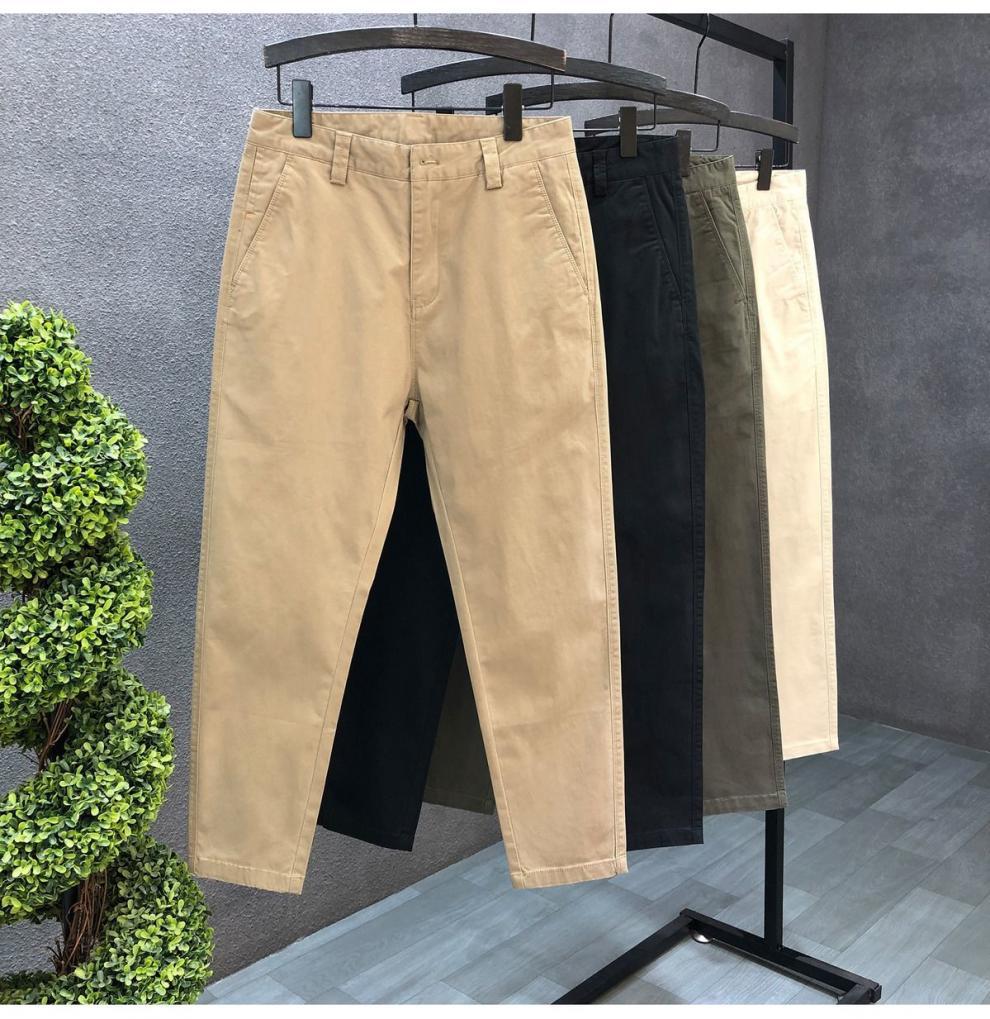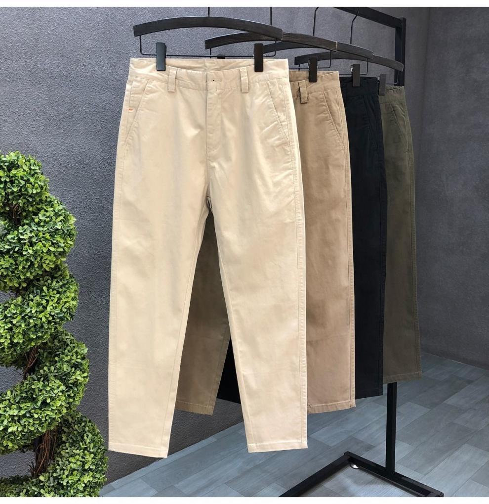 여름 하이 엔드 트렌디 남성 솔리드 컬러 캐주얼 바지 2025 새로운 유행 얇은 올 매치 남자 슬림 핏 크롭 팬츠스토어 가기