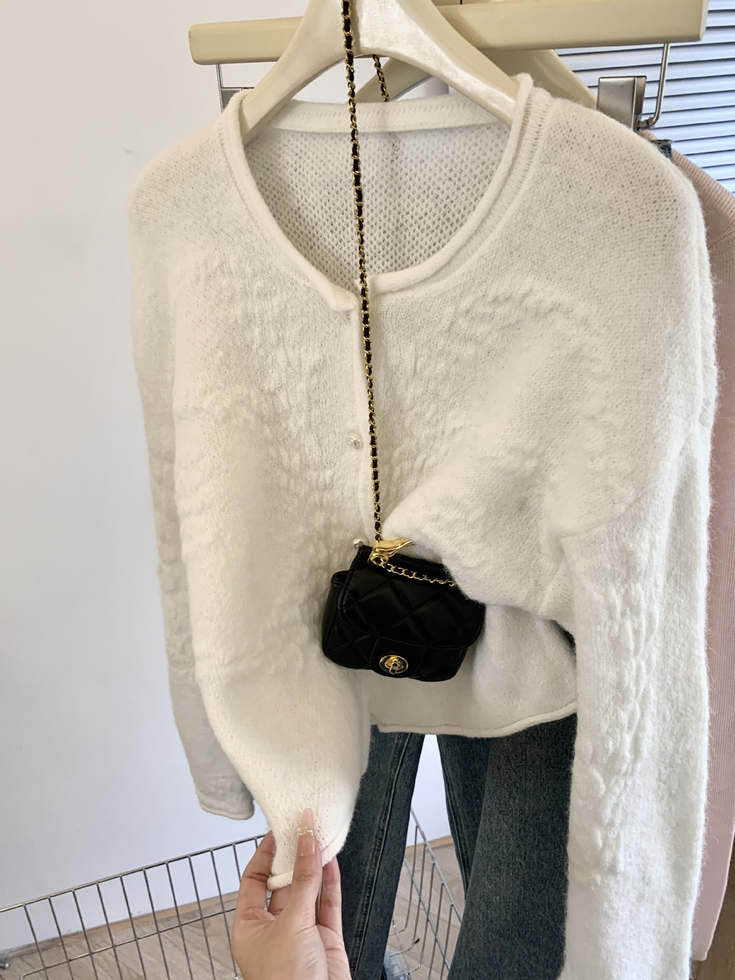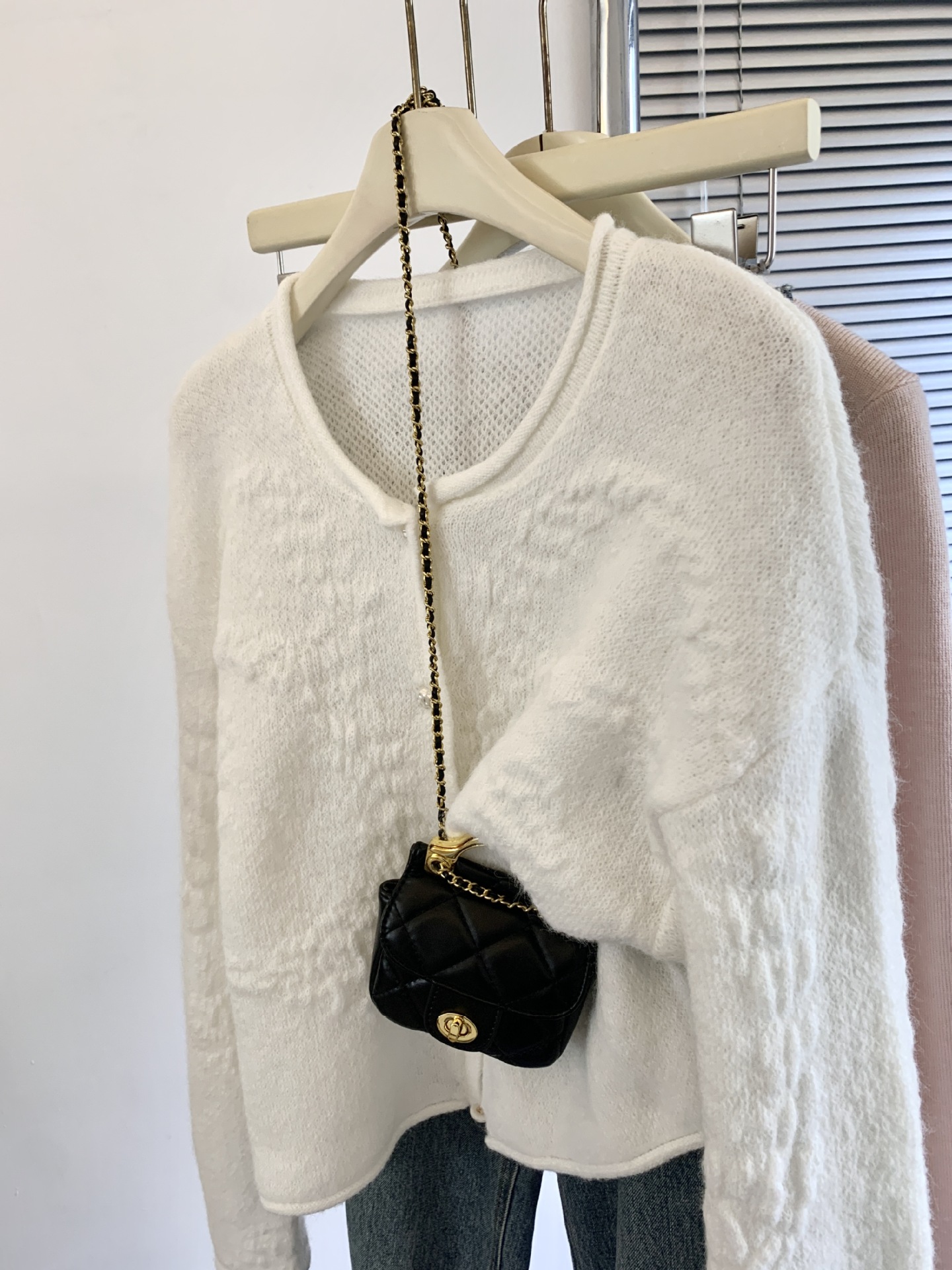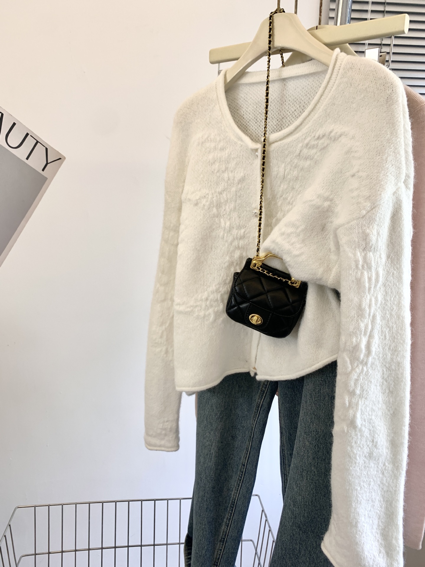 진짜 샷 부드러운 스타일 스웨터 카디건 봄과 여름 2025 새로운 코트 느슨한 복고풍 디자인 틈새 탑스토어 가기