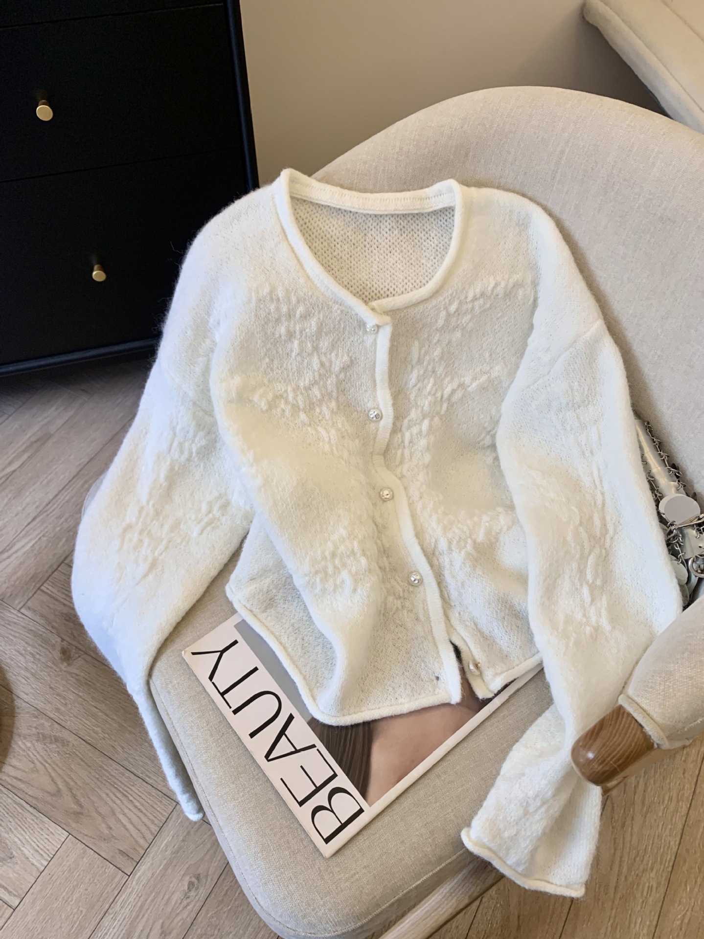 진짜 샷 부드러운 스타일 스웨터 카디건 봄과 여름 2025 새로운 코트 느슨한 복고풍 디자인 틈새 탑