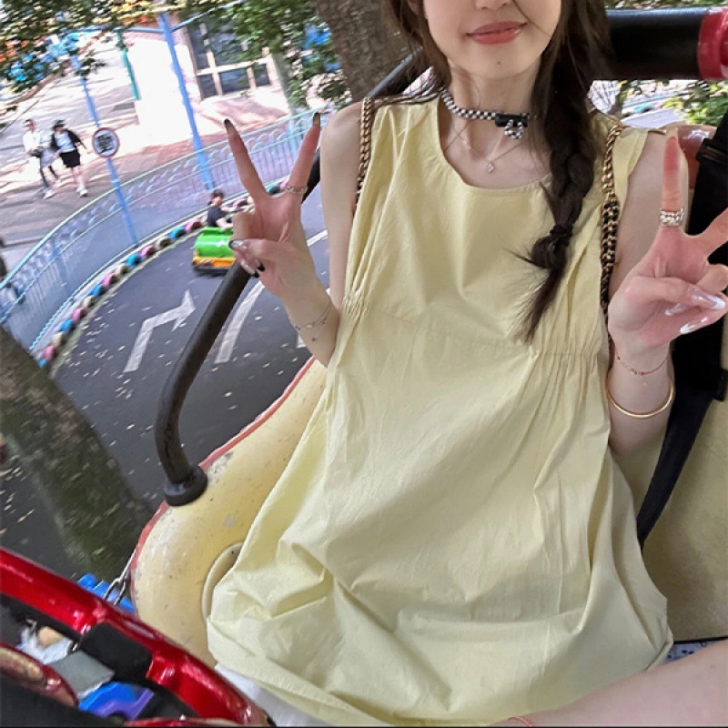 여름 가리 주름 디자인 민소매 조끼 올 매치 루즈 슬림 셔츠 탑스토어 가기