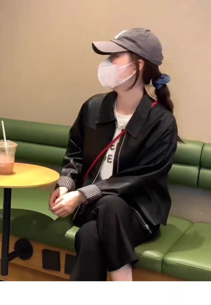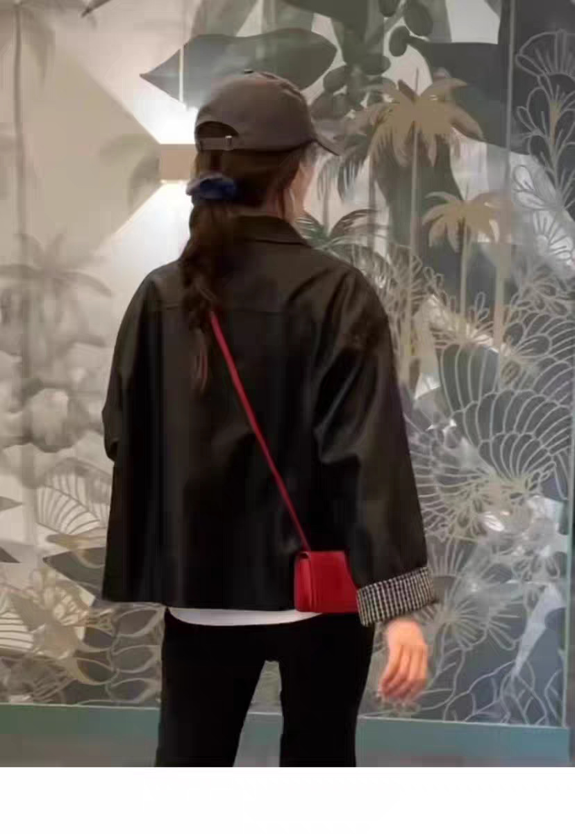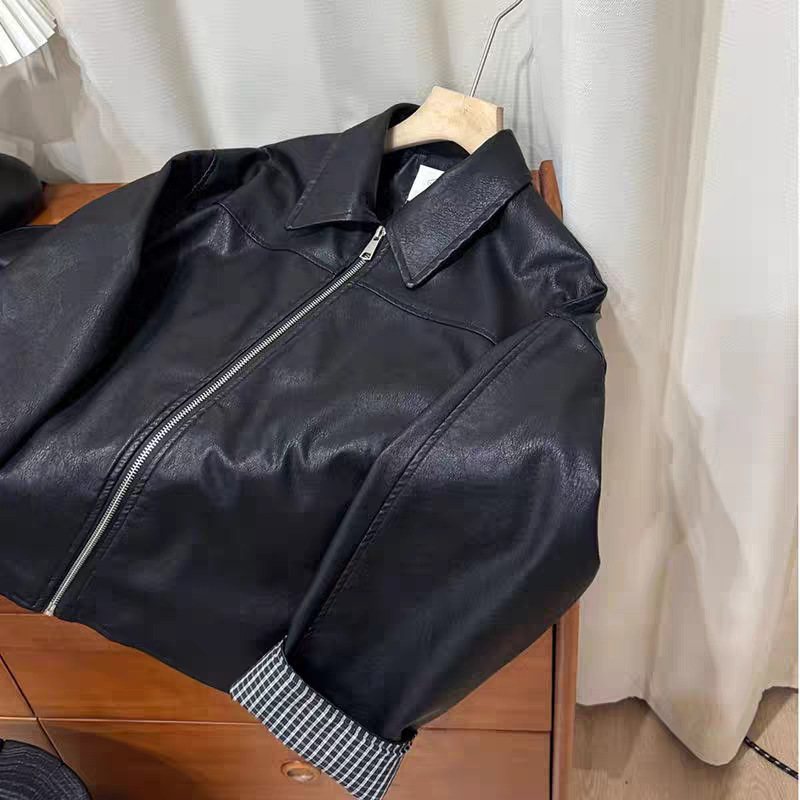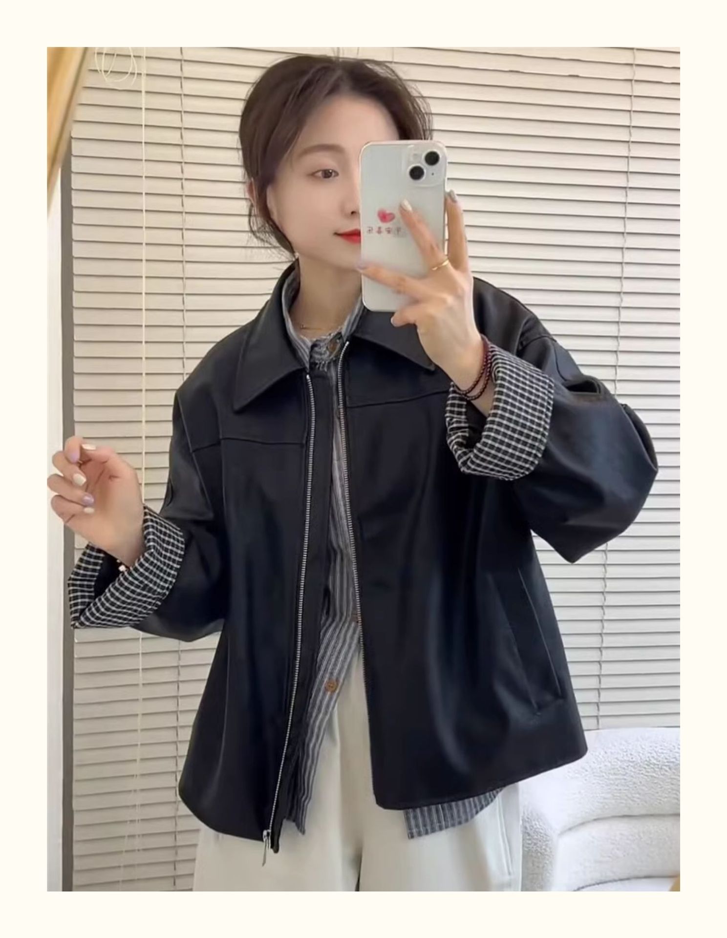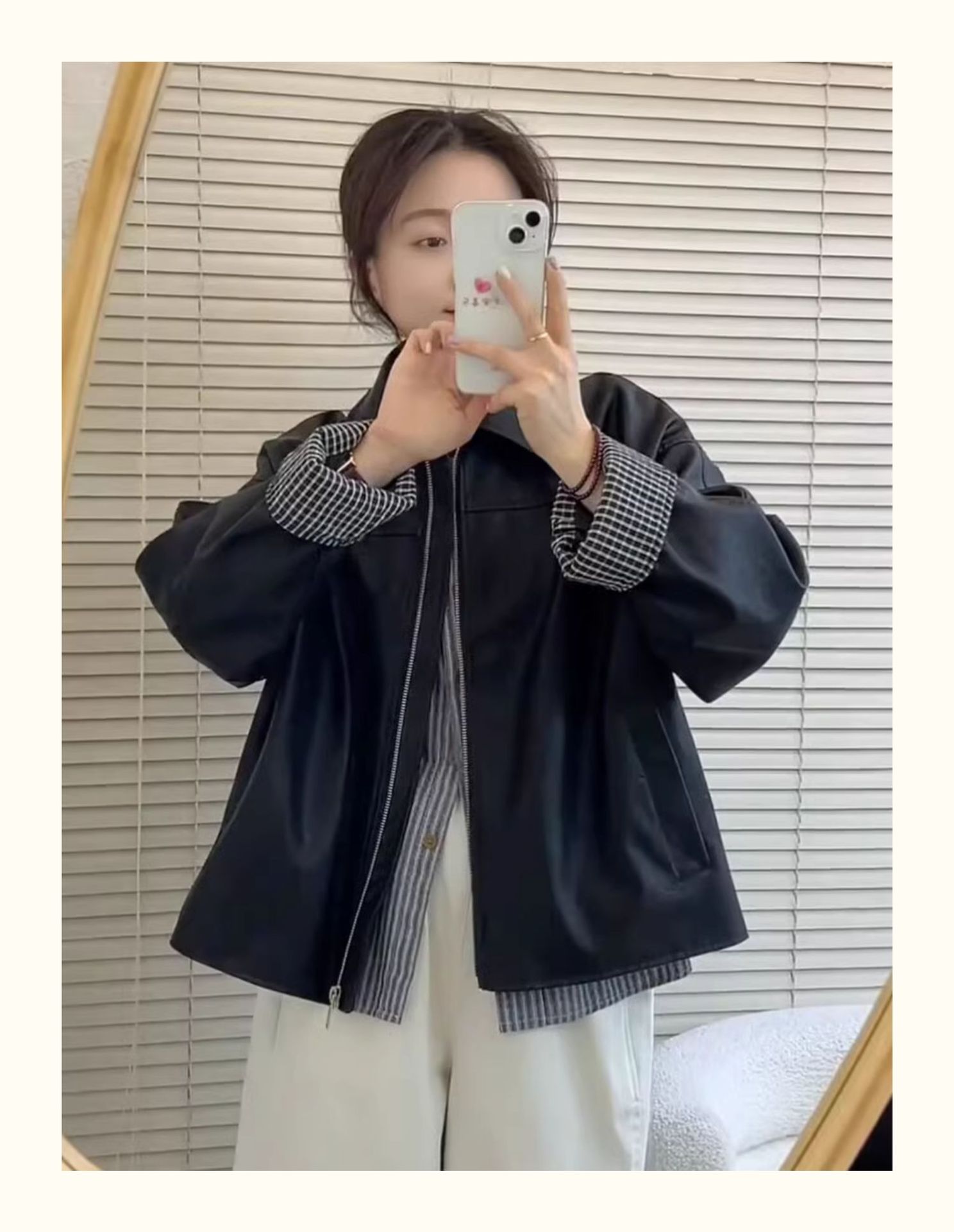 하이 엔드 레트로 격자 무늬 가죽 자켓 여성용 2025 봄 새로운 루즈 캐주얼 올 매치 PU 가죽 자켓스토어 가기