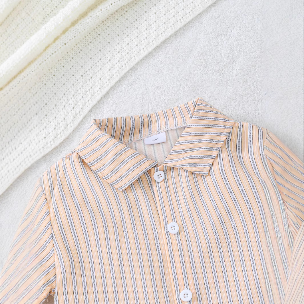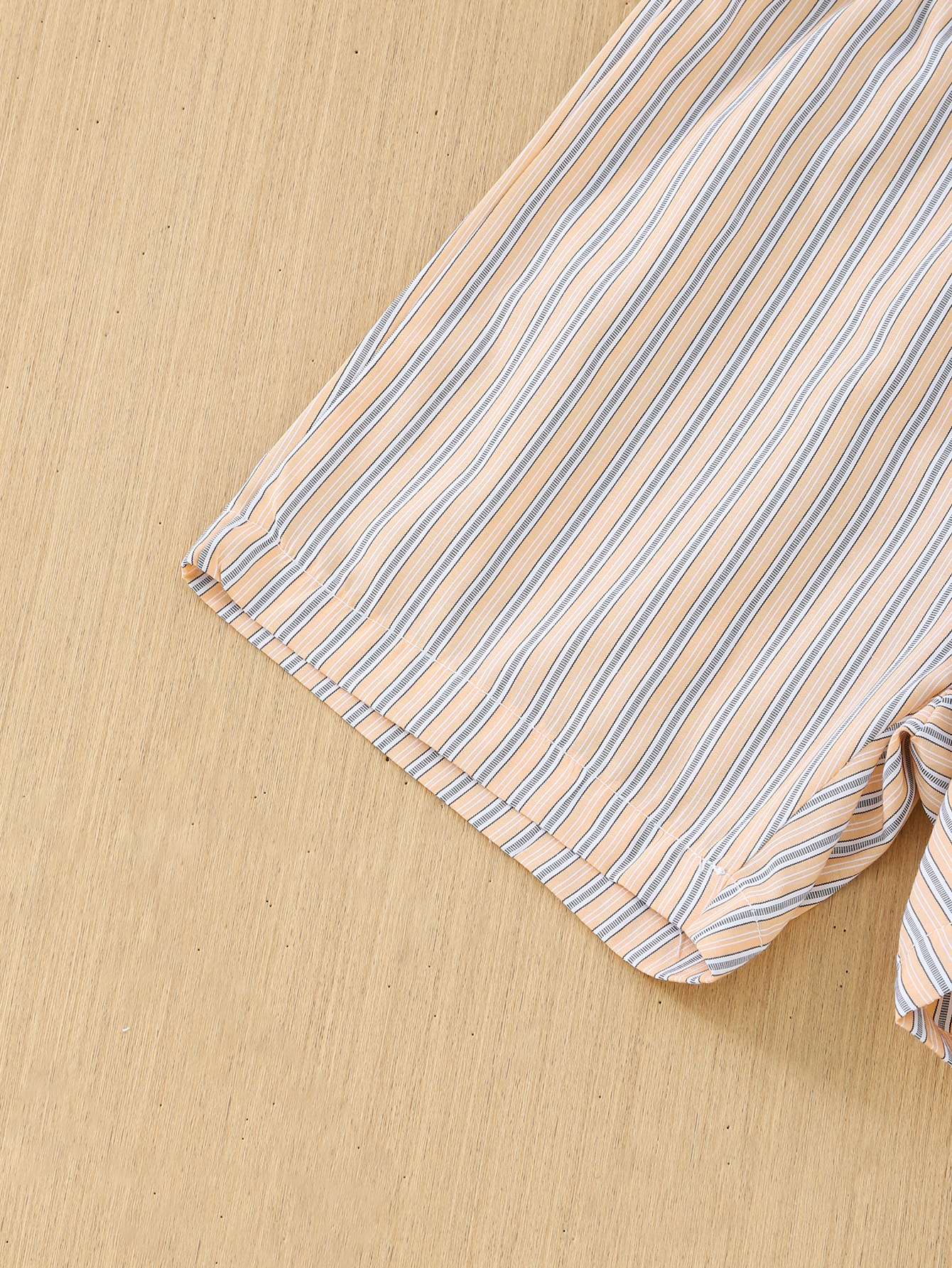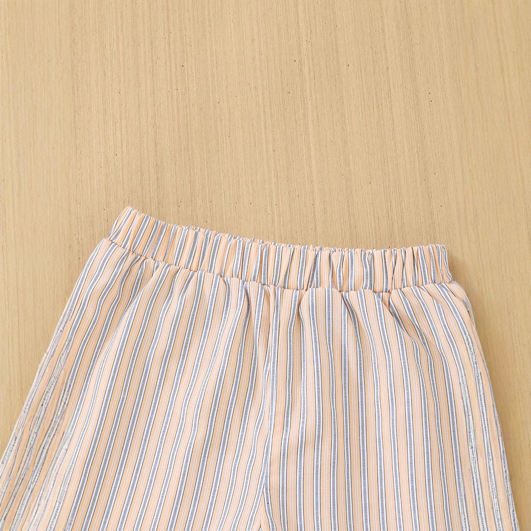 두 조각 소년의 줄무늬 인쇄 셔츠 칼라 싱글 가슴 오픈 라켓 짧은 소매 셔츠 및 느슨한 허리 캐주얼 반바지