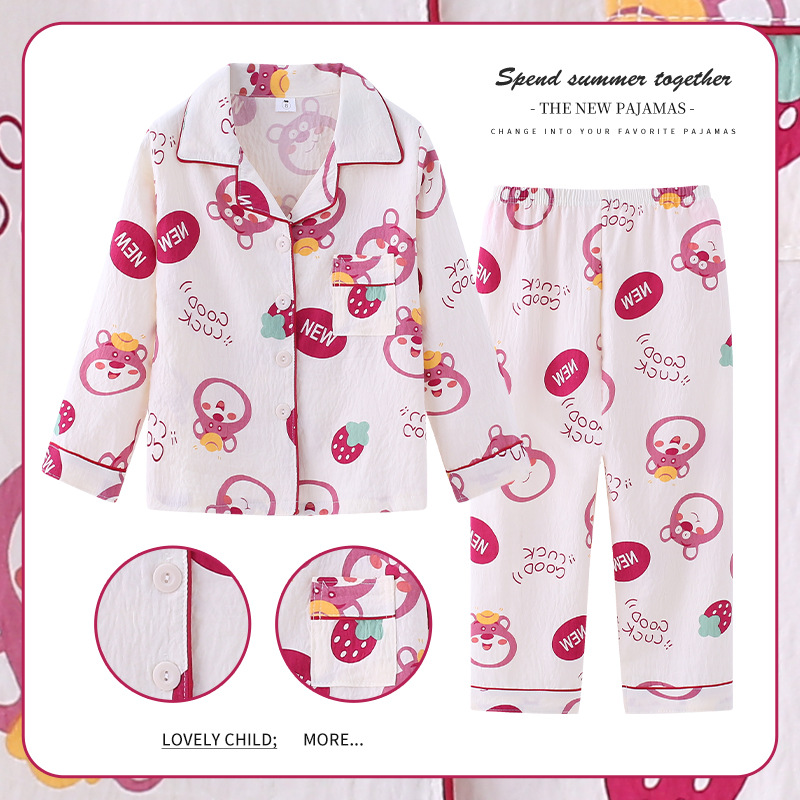 어린이 잠옷 봄과 가을 긴 소매 잠옷 소년과 소녀 구름 면 파자마 대형 어린이 옷깃 홈 옷 세트스토어 가기