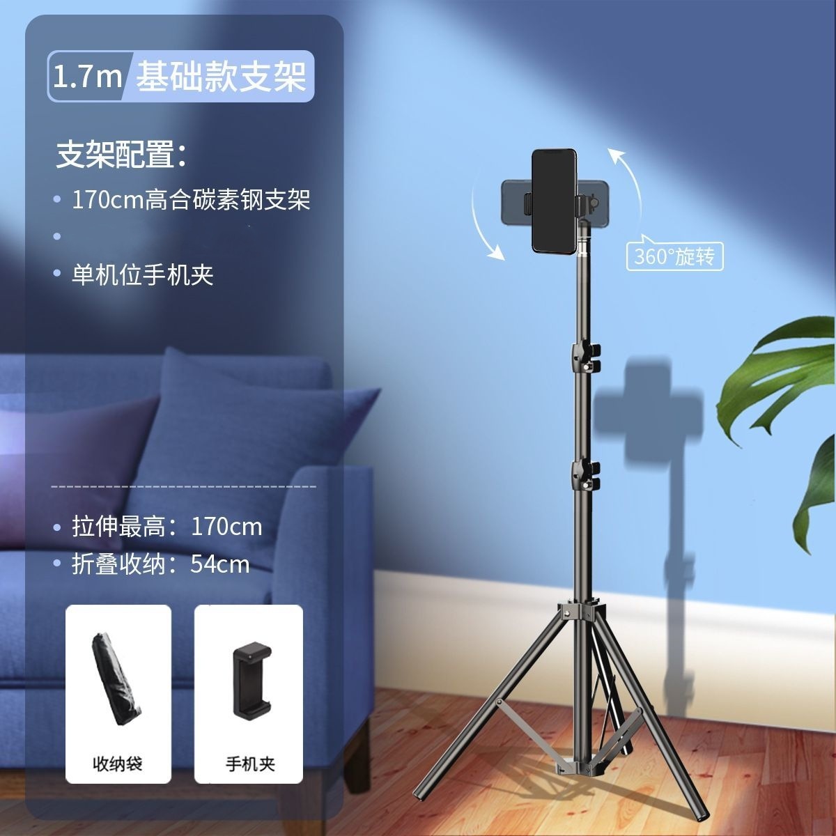 • 블랙 - 1.7m 싱글 카메라 생방송 브래킷 기본 모델