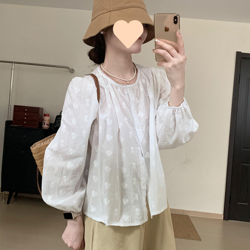 프랑스 자수 라운드 넥 셔츠 2025 봄과 여름 디자인 새로운 느슨한 올 매치 썬 탑스토어 가기