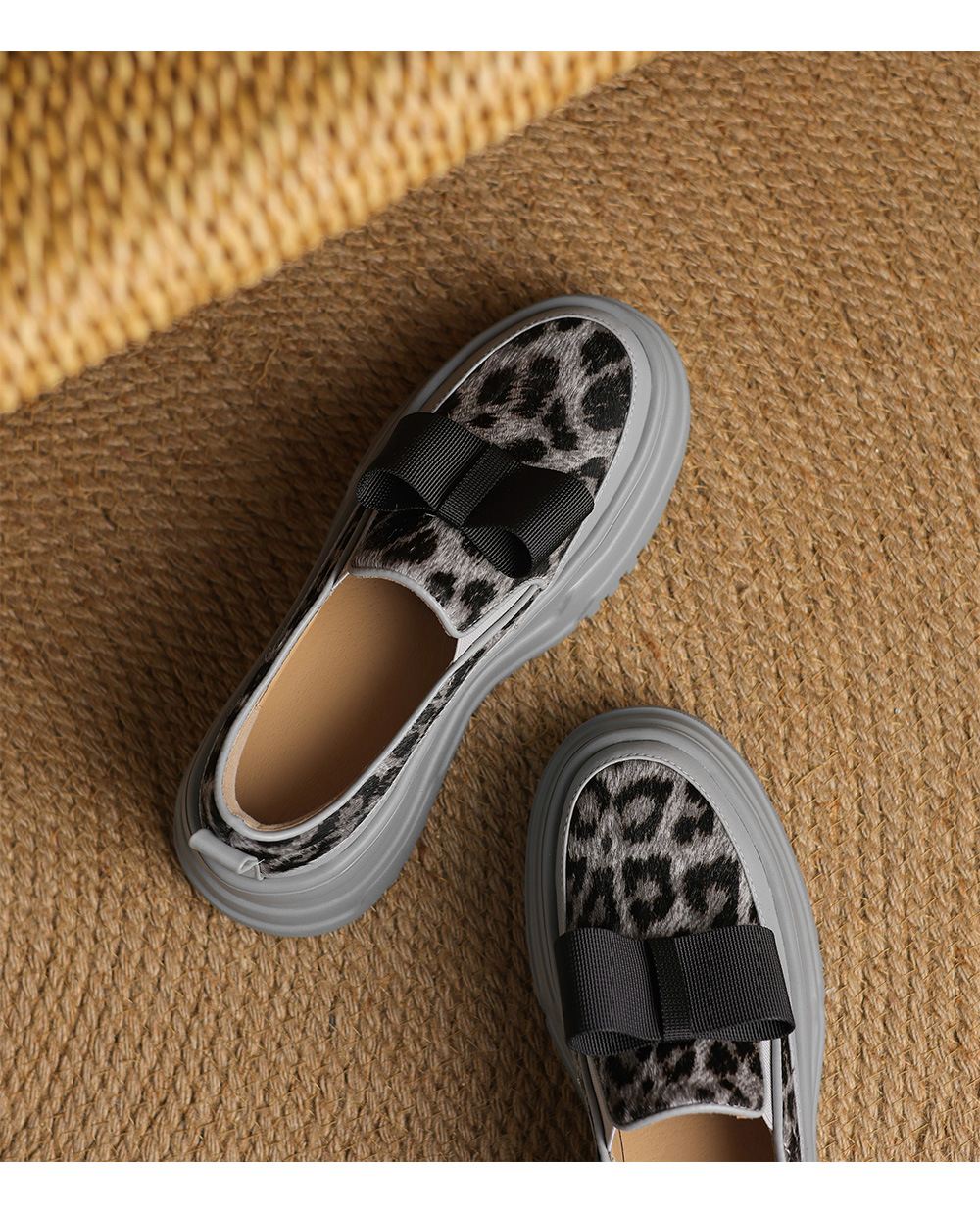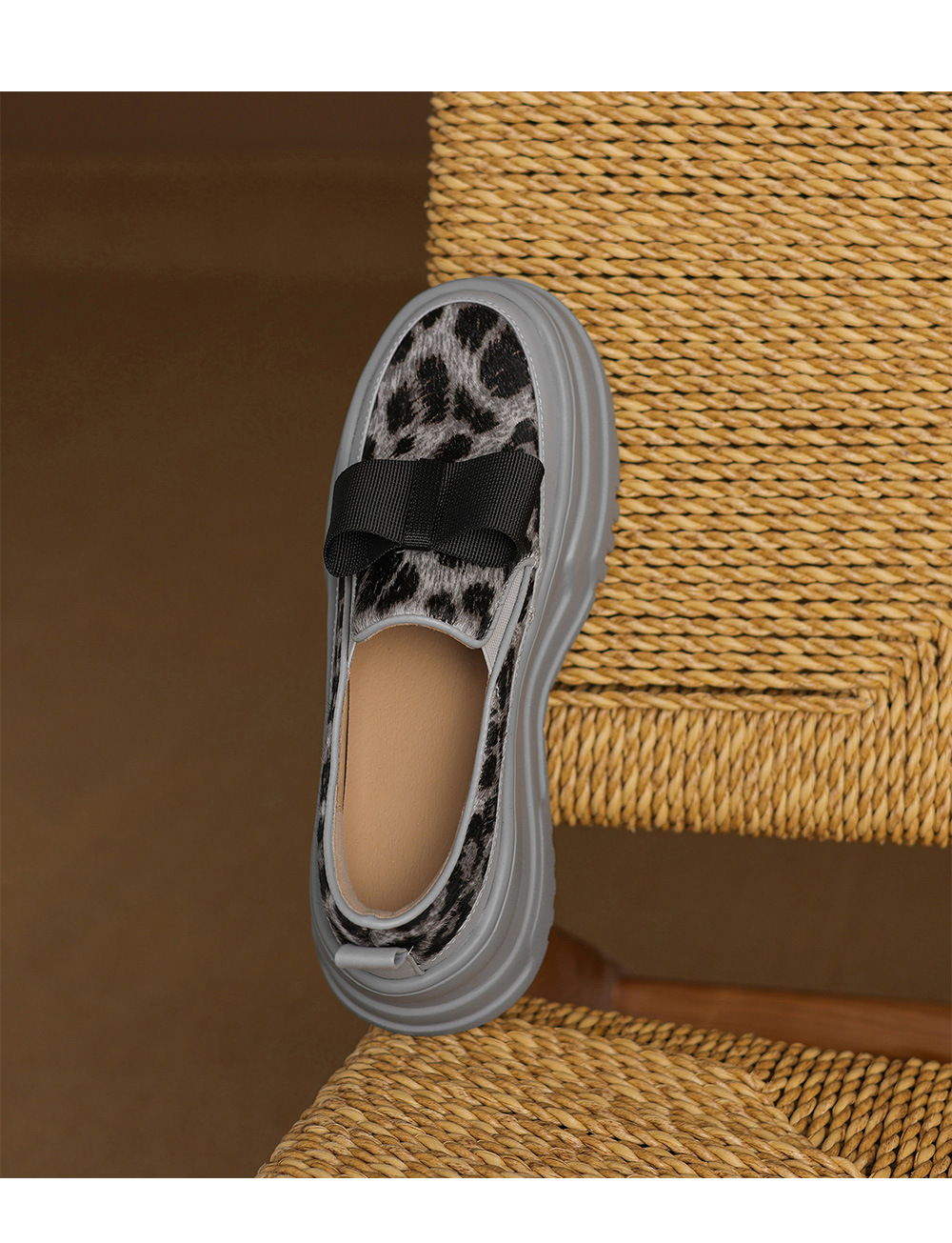 활 두꺼운 밑창 작은 가죽 신발 여성 정품 가죽 말 머리 로퍼 2025 새로운 봄 레오파드 무늬 로퍼 로퍼