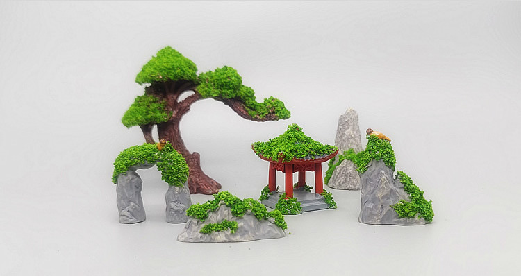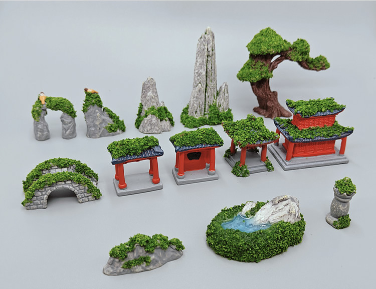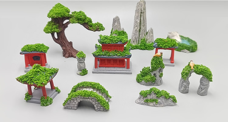 전체 19 위안 우표 이끼 마이크로 풍경 중국 고대 건축 파빌리온 다리 바위 조경 원예 생태 병 장식 장식품
