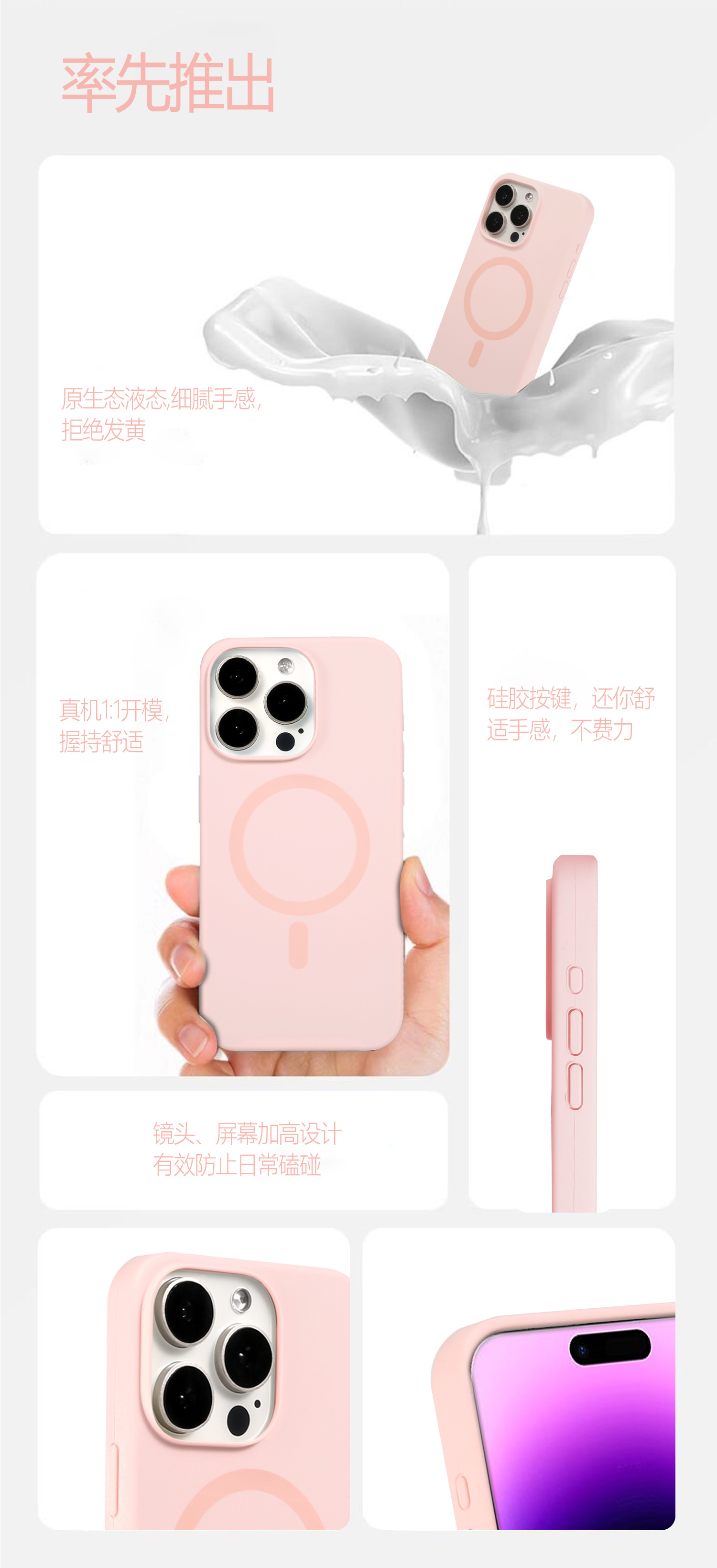 【工艺材质】液态硅胶成型,磁吸 丝印 logo