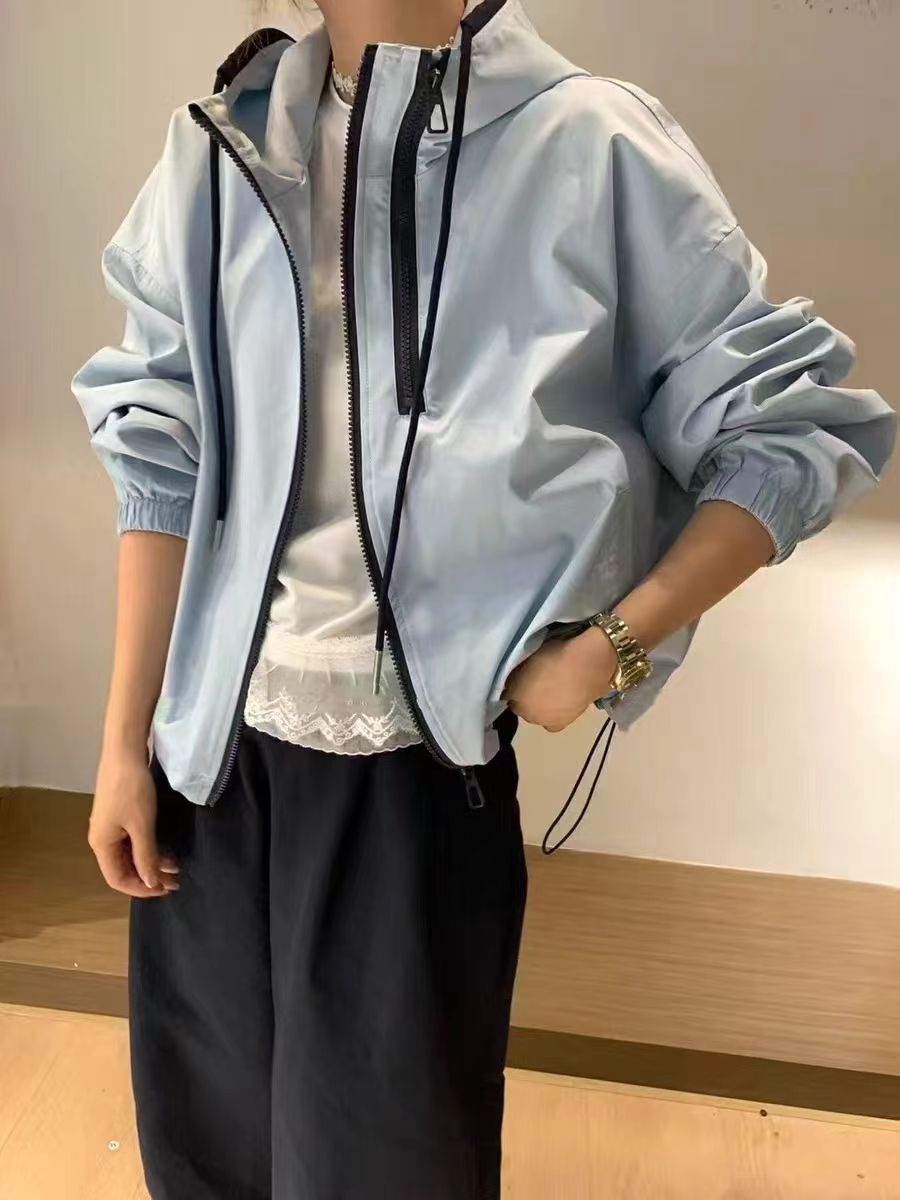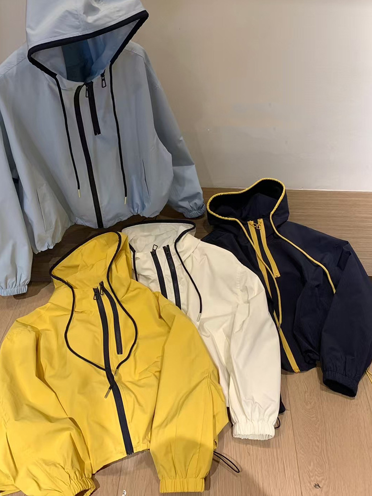 한국식 콘트라스트 컬러 더블 지퍼 코트 여자 2025 봄 가을 새 패션 올매치 러시수트 캐주얼 자켓 탑