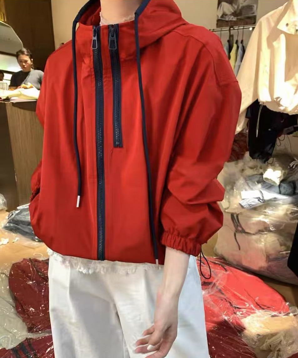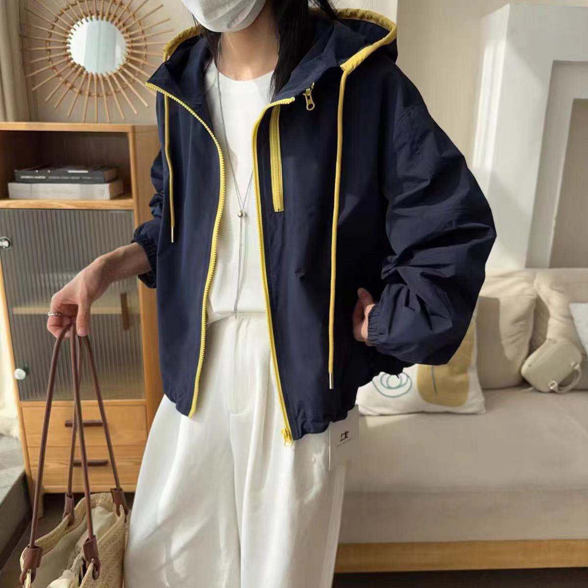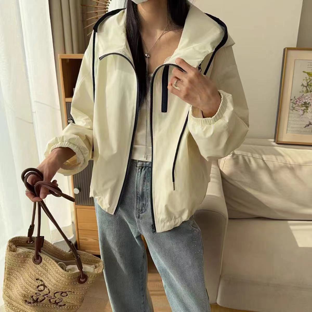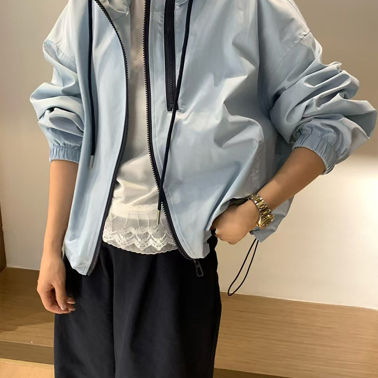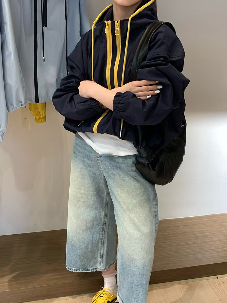 한국식 콘트라스트 컬러 더블 지퍼 코트 여자 2025 봄 가을 새 패션 올매치 러시수트 캐주얼 자켓 탑스토어 가기
