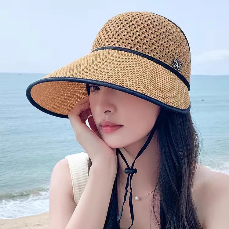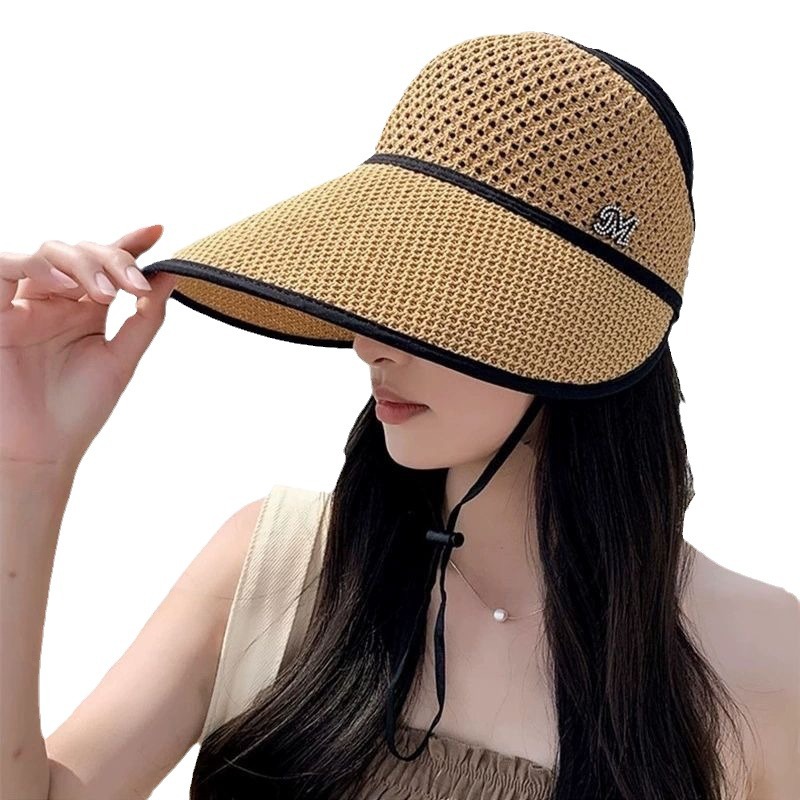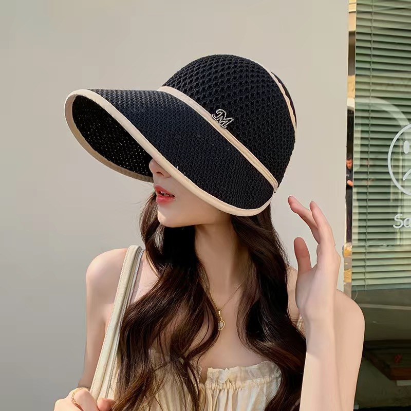 2025 여름 여성용 자외선 차단 모자, 엄마들을 위한 새롭고 넓은 챙의 햇빛 가리개 모자, 통기성 좋은 일체형 오픈탑 모자, 영국식 레터링스토어 가기