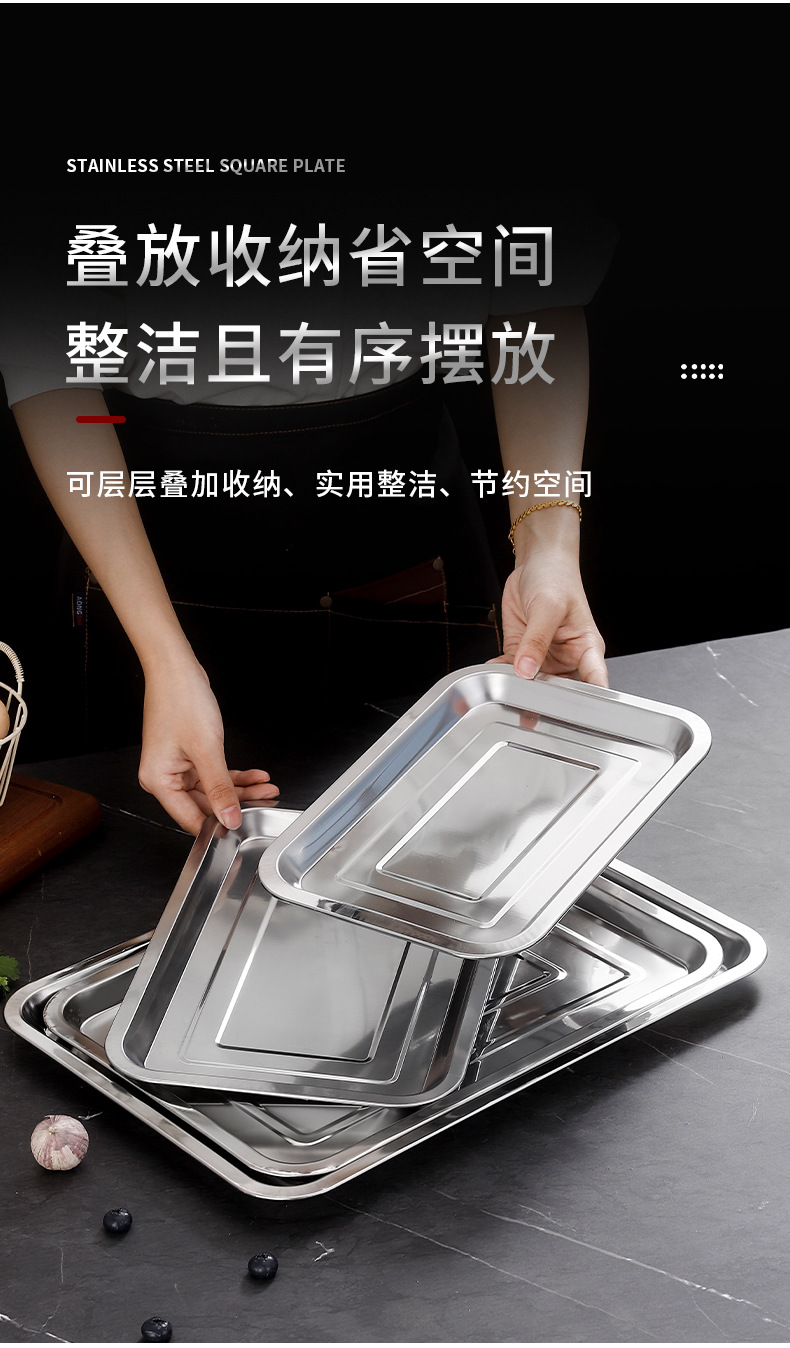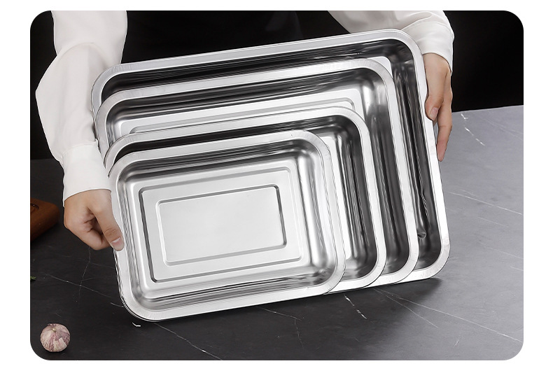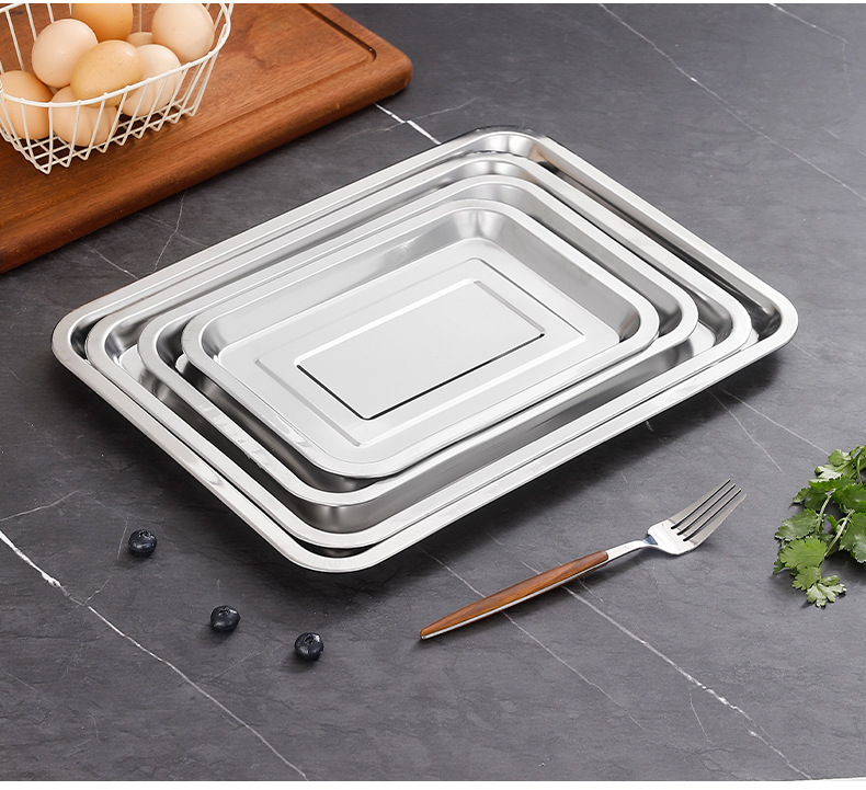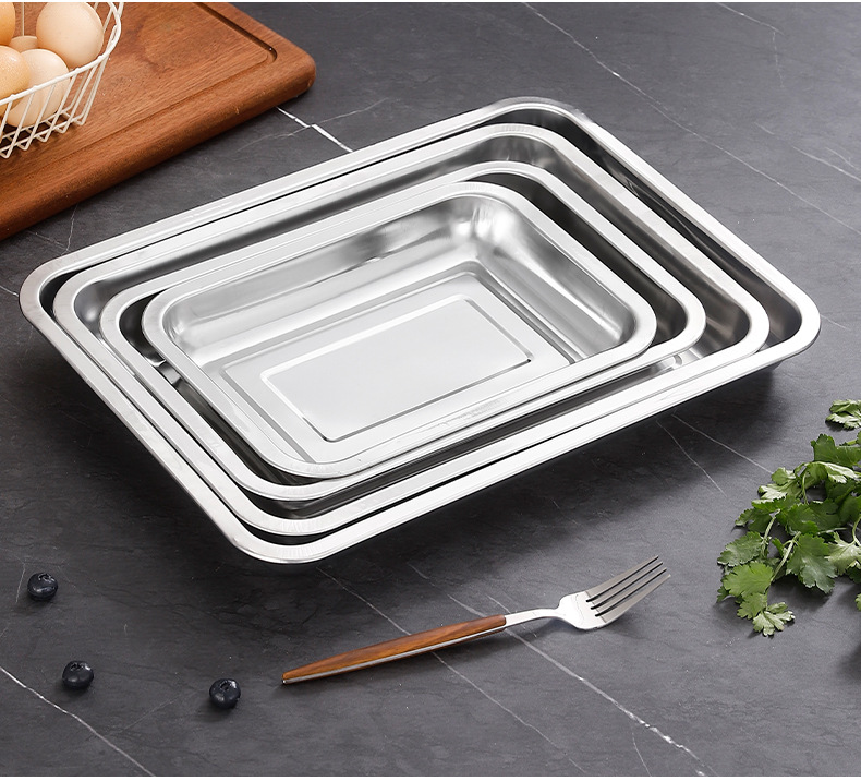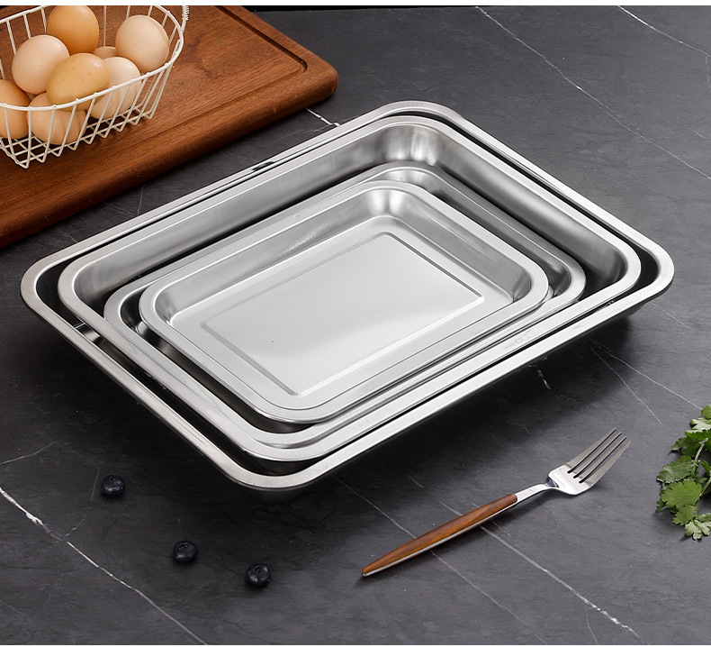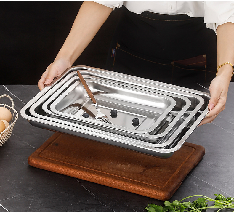 스테인레스 스틸 스퀘어 플레이트 깊고 얕은 찐 라이스 플레이트 두껍게 직사각형 구운 생선 플레이트 스퀘어 플레이트 요리 식품 플레이트 바베큐 트레이