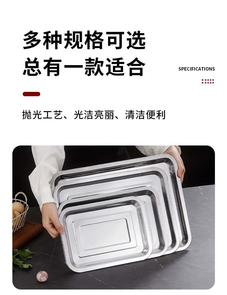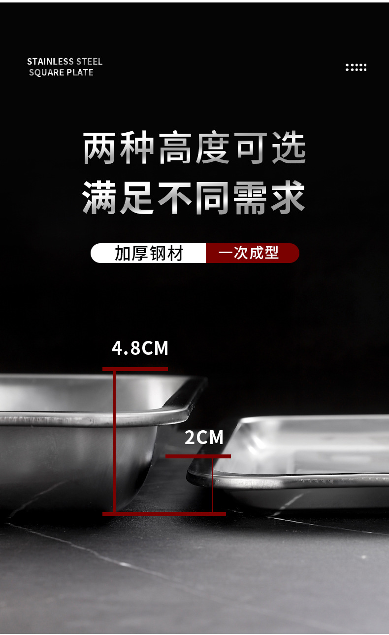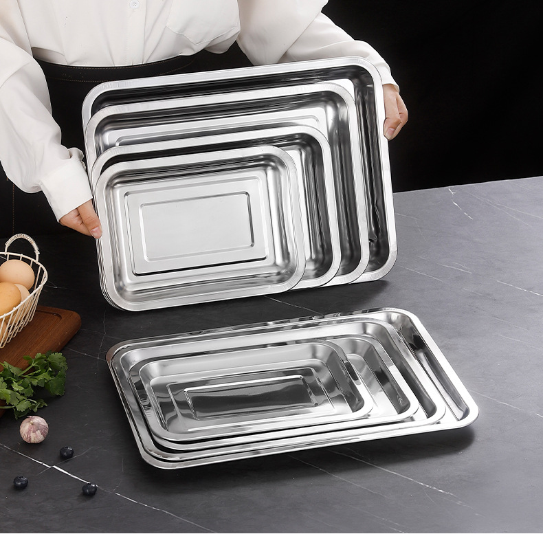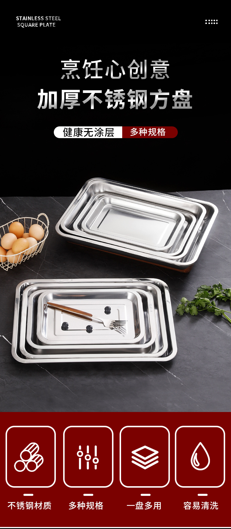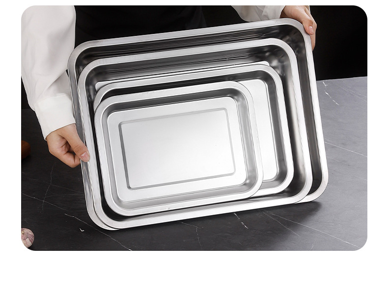 스테인레스 스틸 스퀘어 플레이트 깊고 얕은 찐 라이스 플레이트 두껍게 직사각형 구운 생선 플레이트 스퀘어 플레이트 요리 식품 플레이트 바베큐 트레이