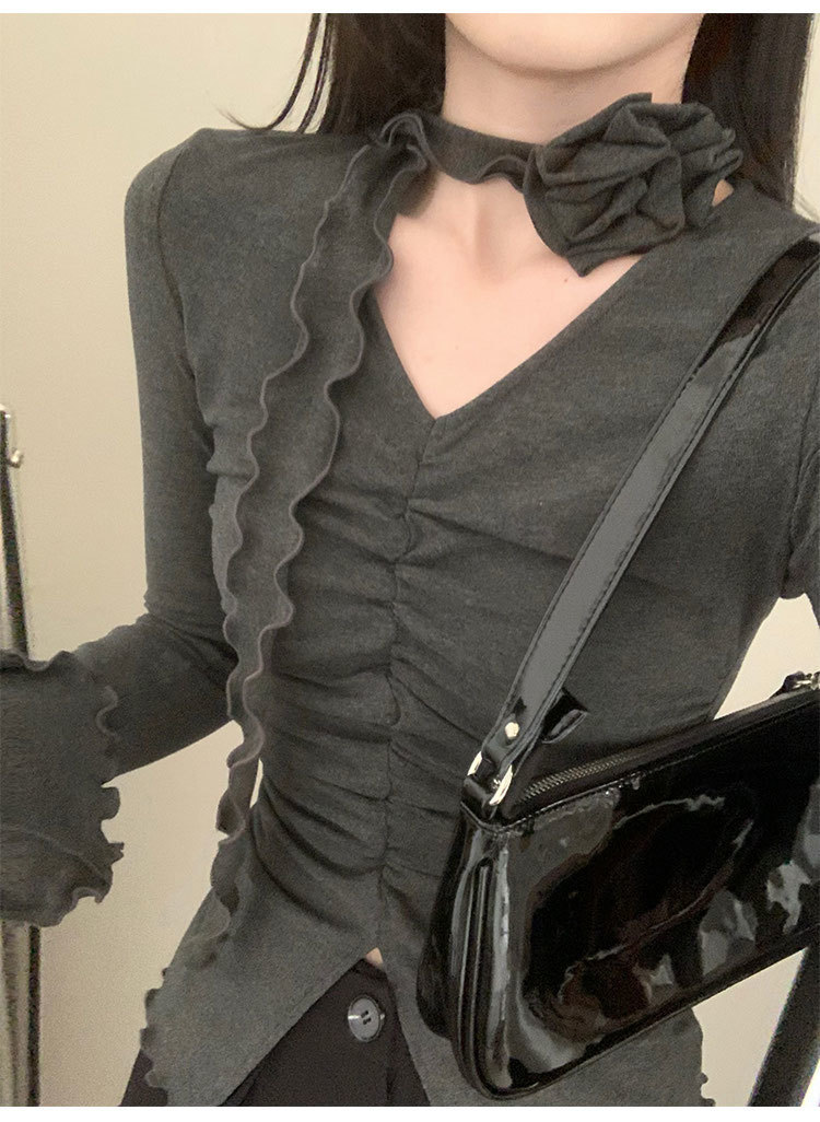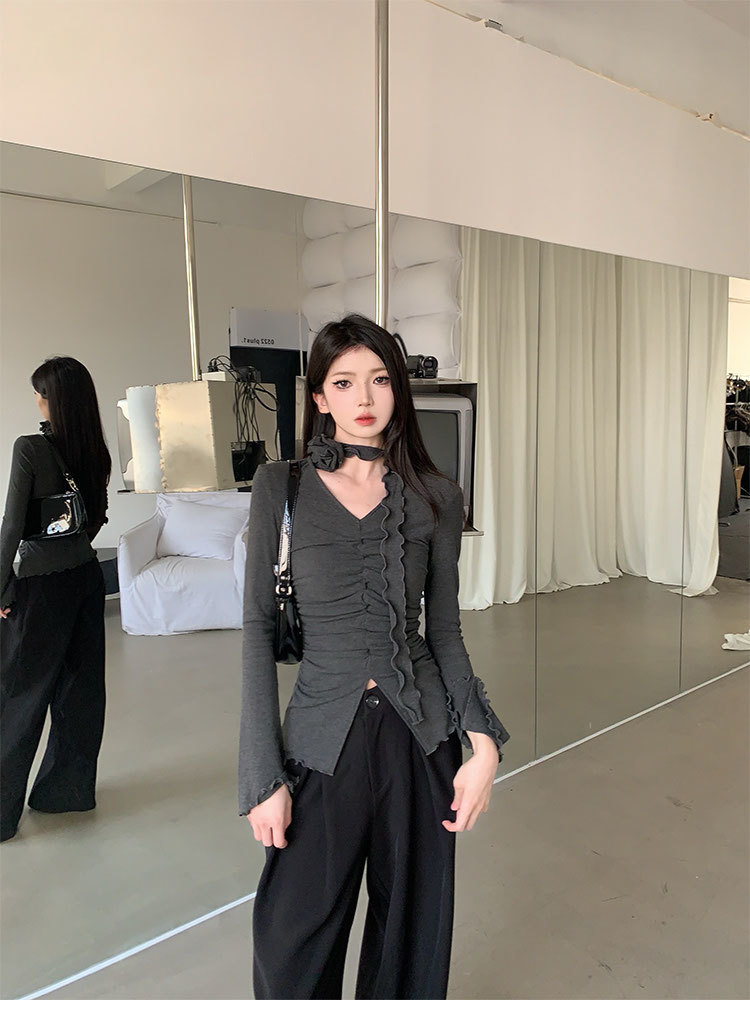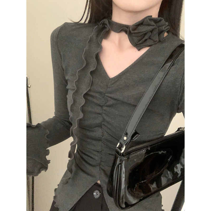 베이스 셔츠 여성의 2025 새로운 봄 캐주얼 탑 작은 셔츠 스파이스 걸스 긴 소매 티셔츠