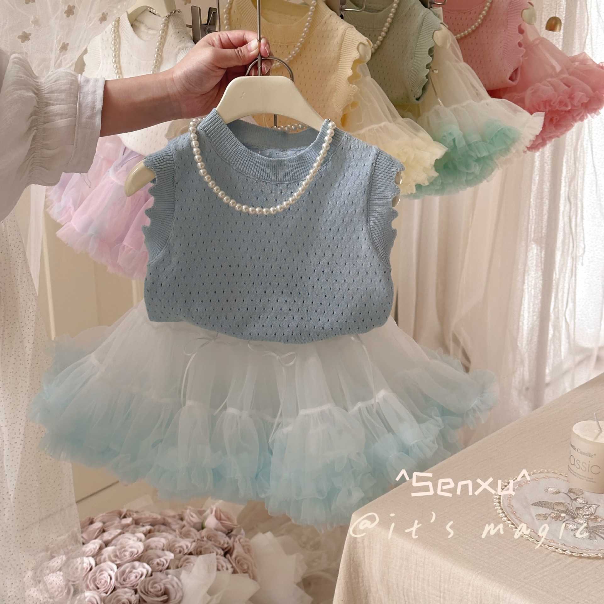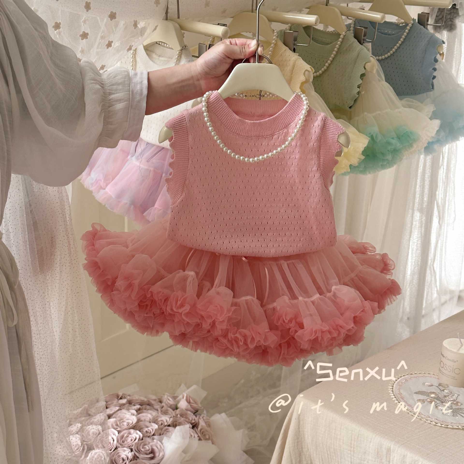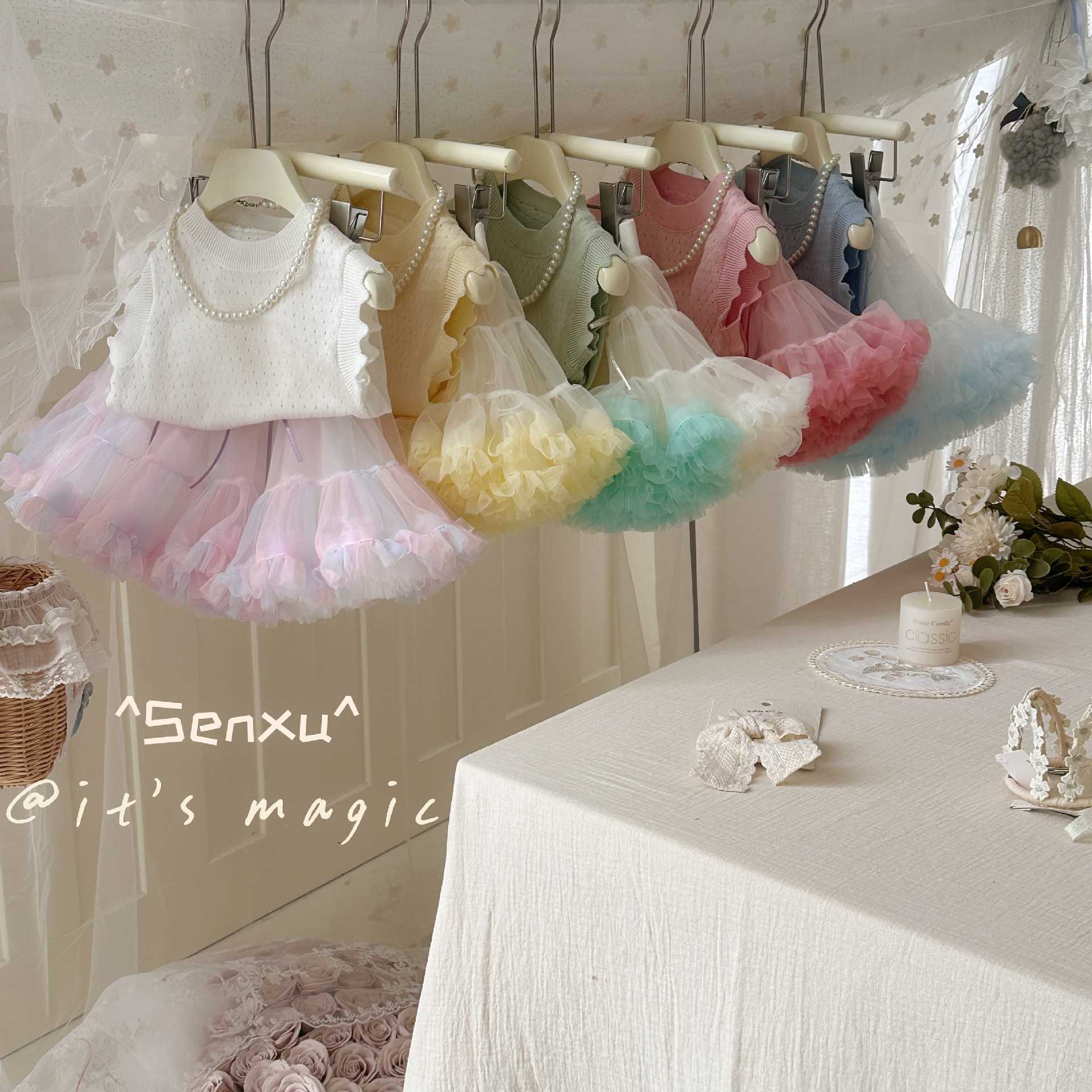 작고 작은 압연 Senxu 소녀의 서양식 조끼 세트 투투 스커트 올 매치 하프 길이 케이크 스커트 소녀 스커트스토어 가기