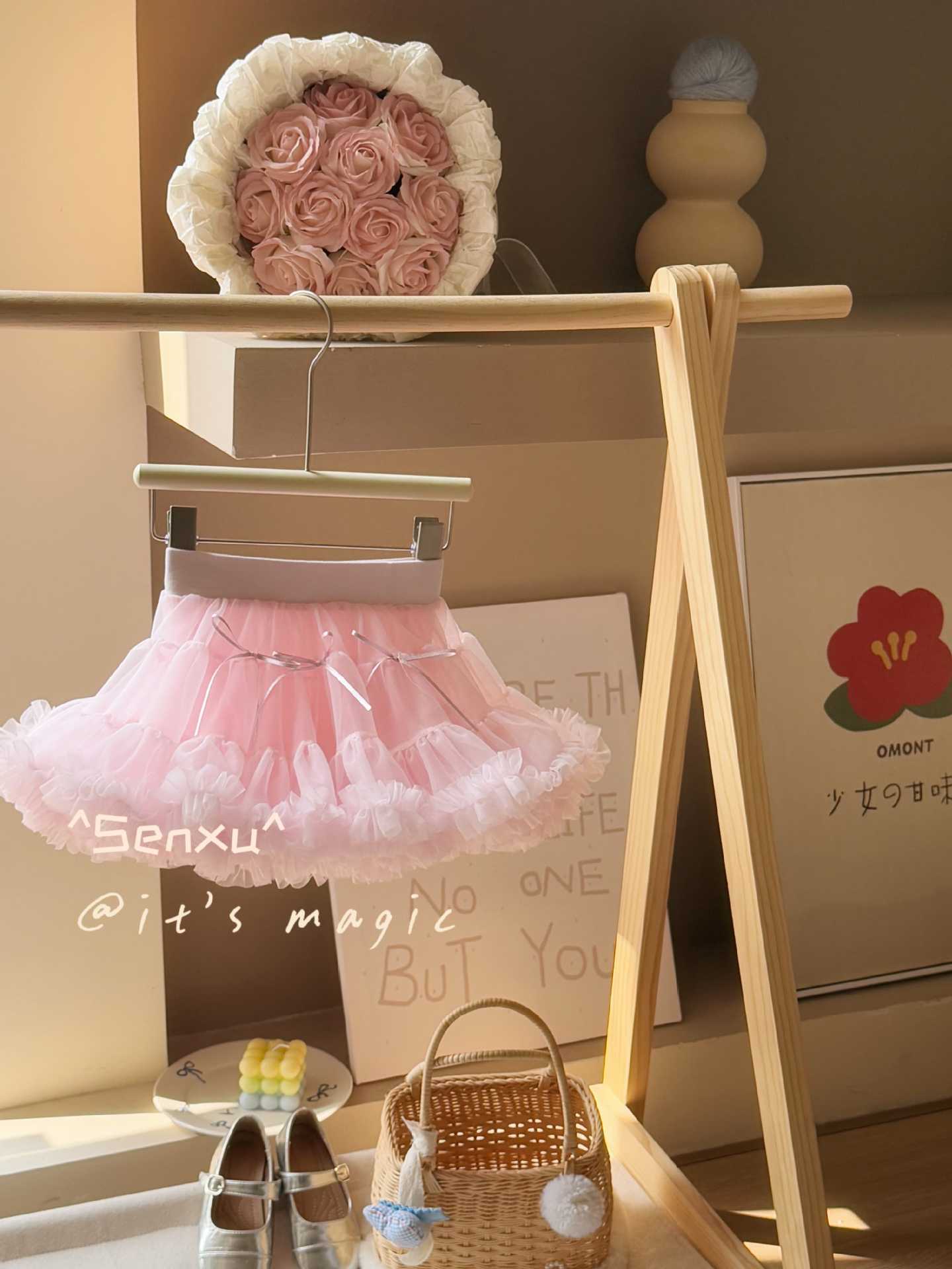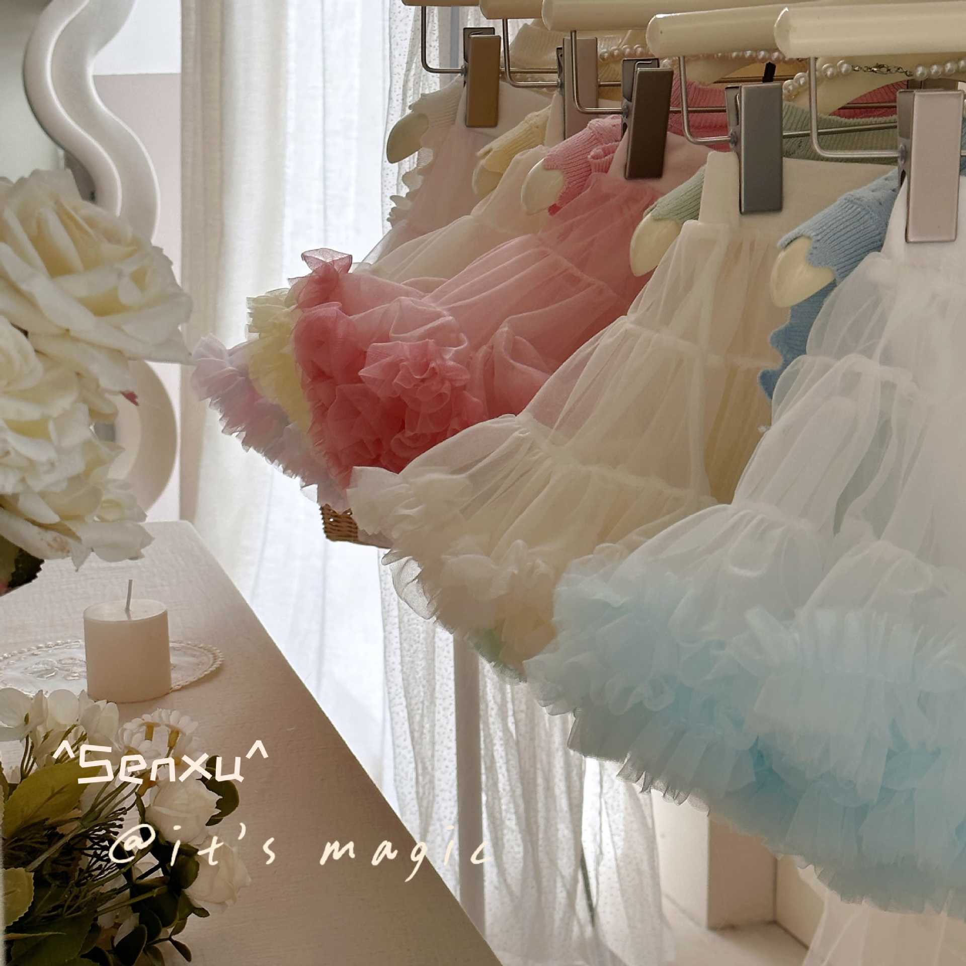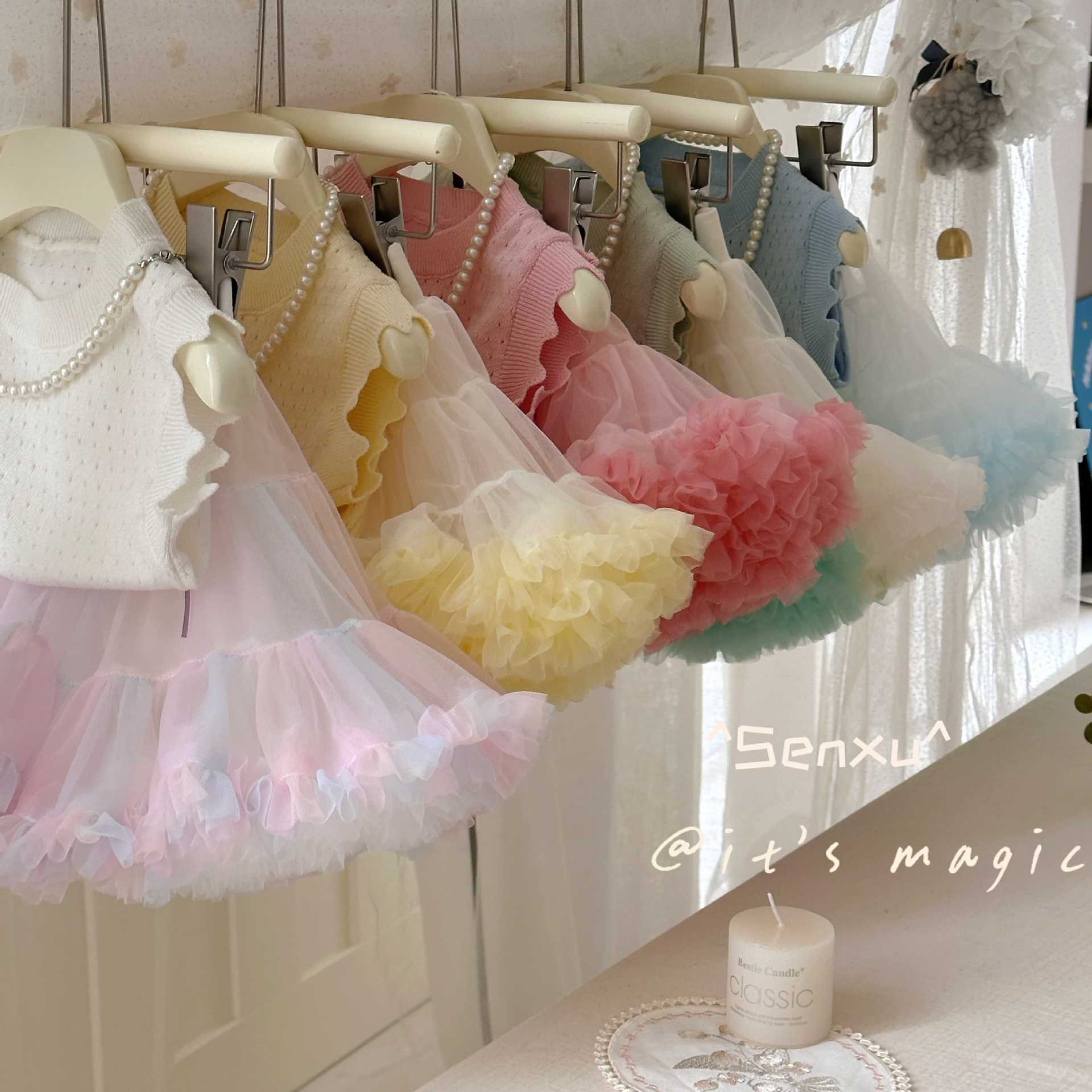 작고 작은 압연 Senxu 소녀의 서양식 조끼 세트 투투 스커트 올 매치 하프 길이 케이크 스커트 소녀 스커트스토어 가기