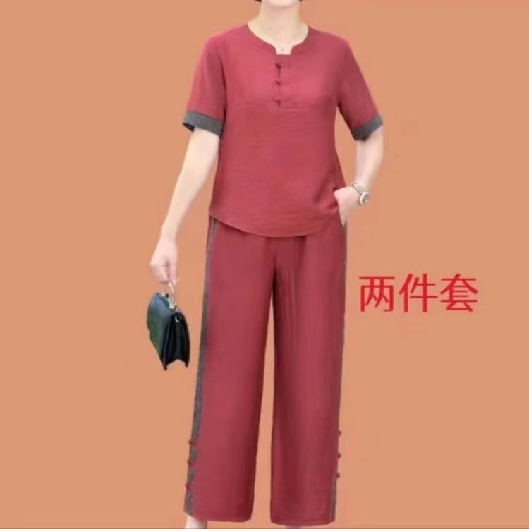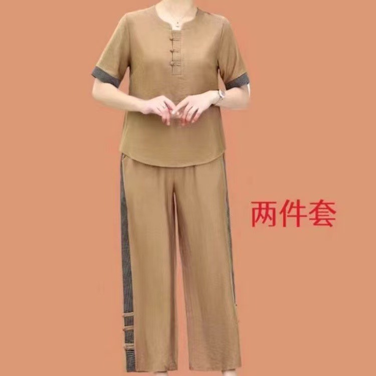 여름 복고풍 여성 패션 세트 반팔 재킷 바지 투피스 세트 여성스토어 가기
