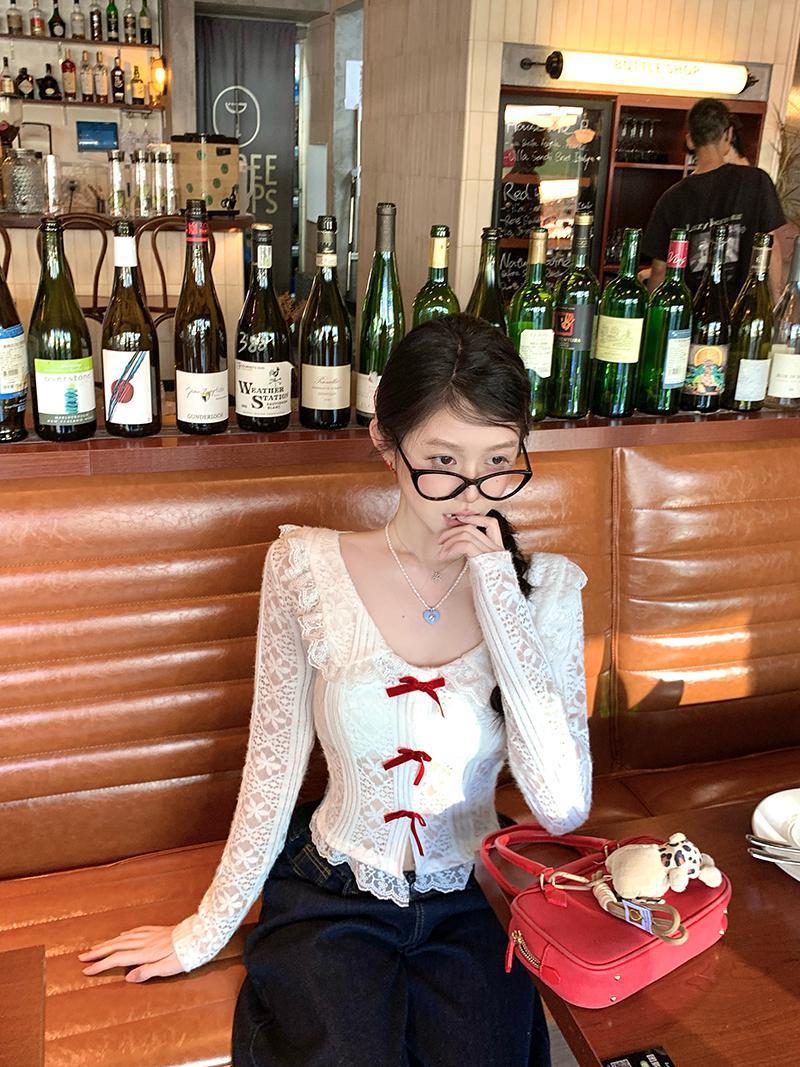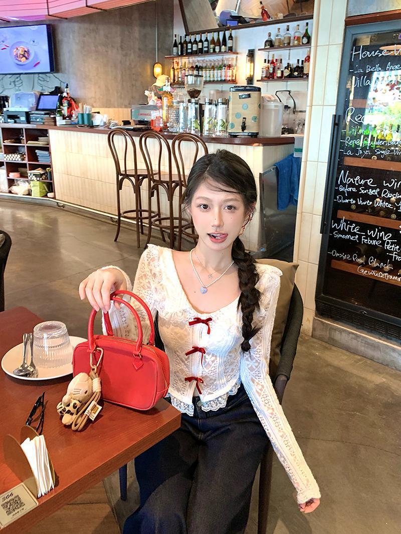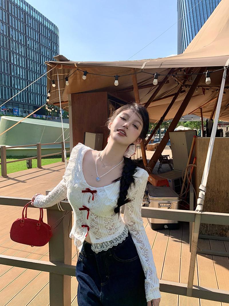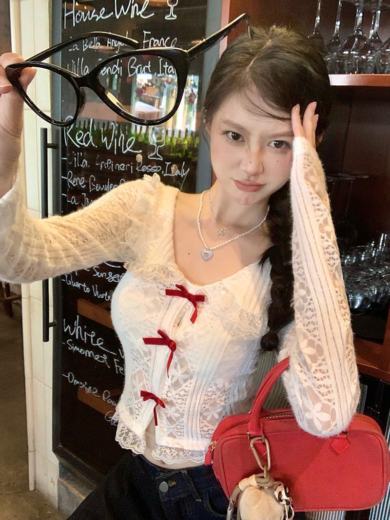 달콤한 인형 칼라 짧은 레이스 셔츠 2025 봄 새로운 슬림핏 슬리밍 달콤하고 매운 긴스토어 가기