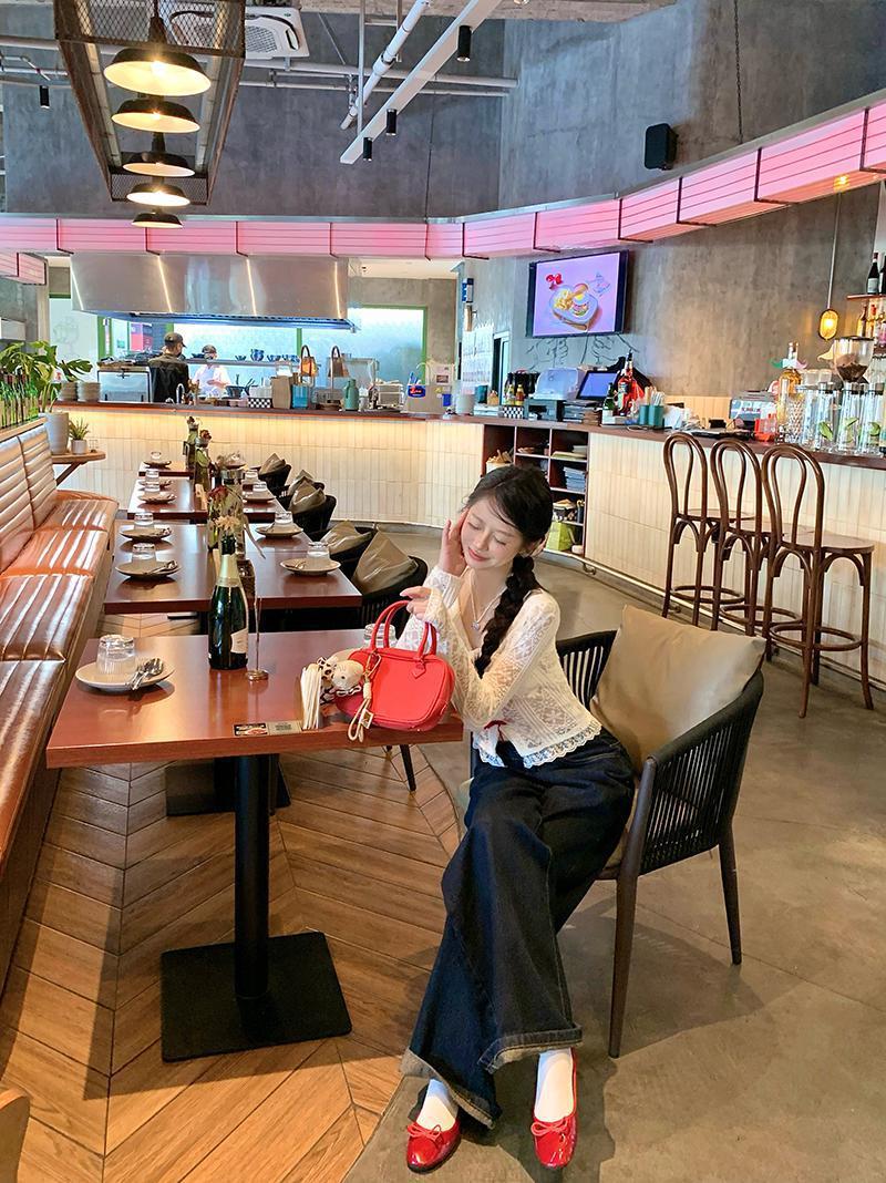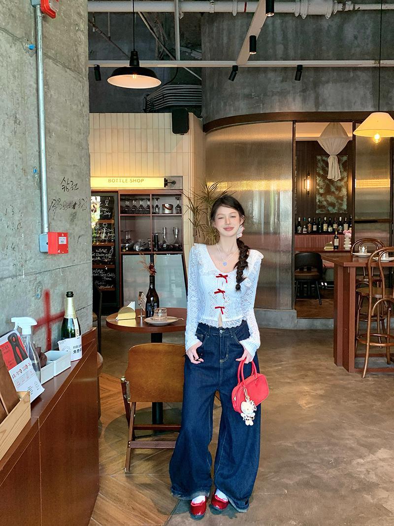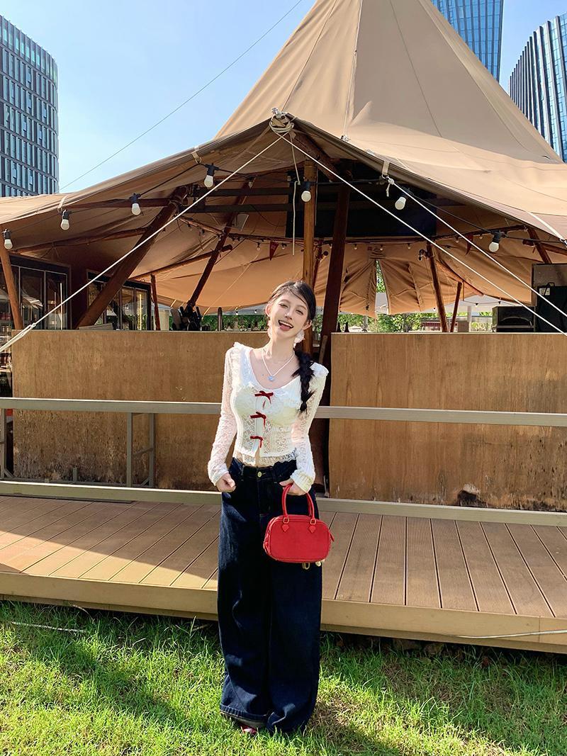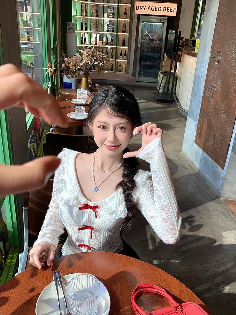 달콤한 인형 칼라 짧은 레이스 셔츠 2025 봄 새로운 슬림핏 슬리밍 달콤하고 매운 긴스토어 가기