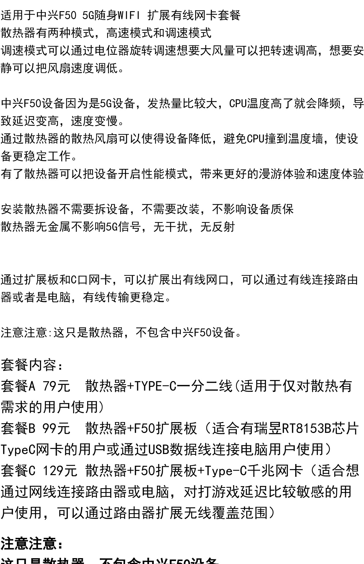 ZTE F50 휴대용 와이파이 CPE 속도 라디에이터 팬 TypeC 확장 유선 네트워크 카드에 적합스토어 가기