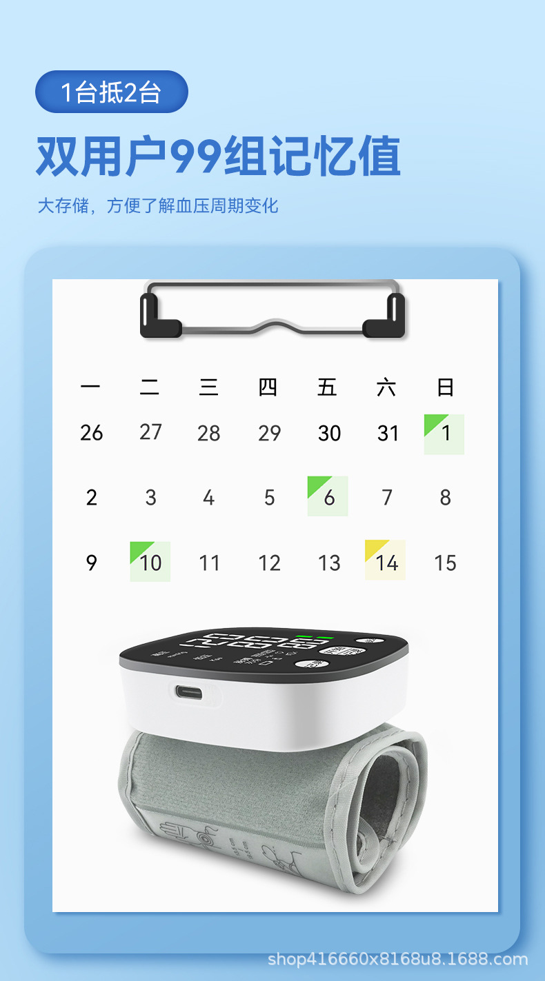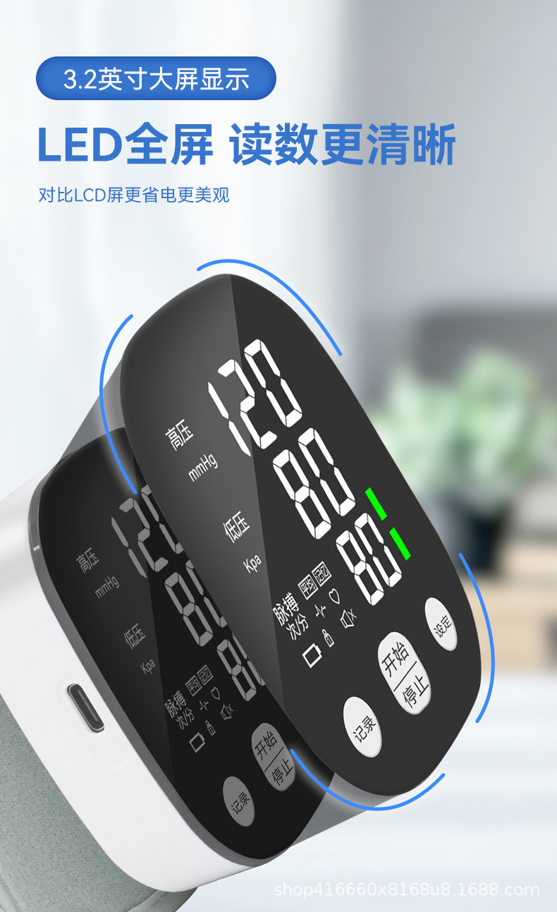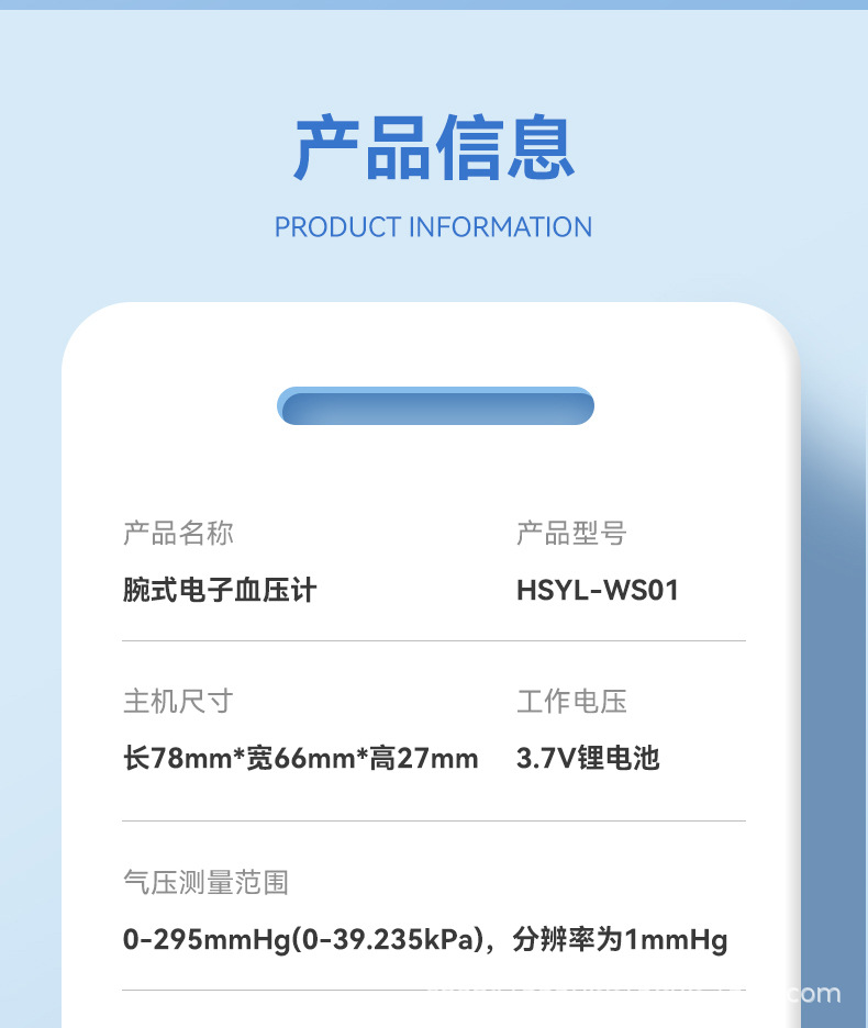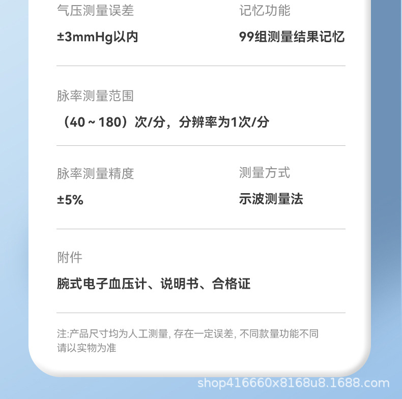 6. 精度: 血压: ±3mmHg(±0. 4kPa)以内 脉搏: 读数的±5%以内 7. 供电方式:内置锂电600mAh或Type-C充电线
