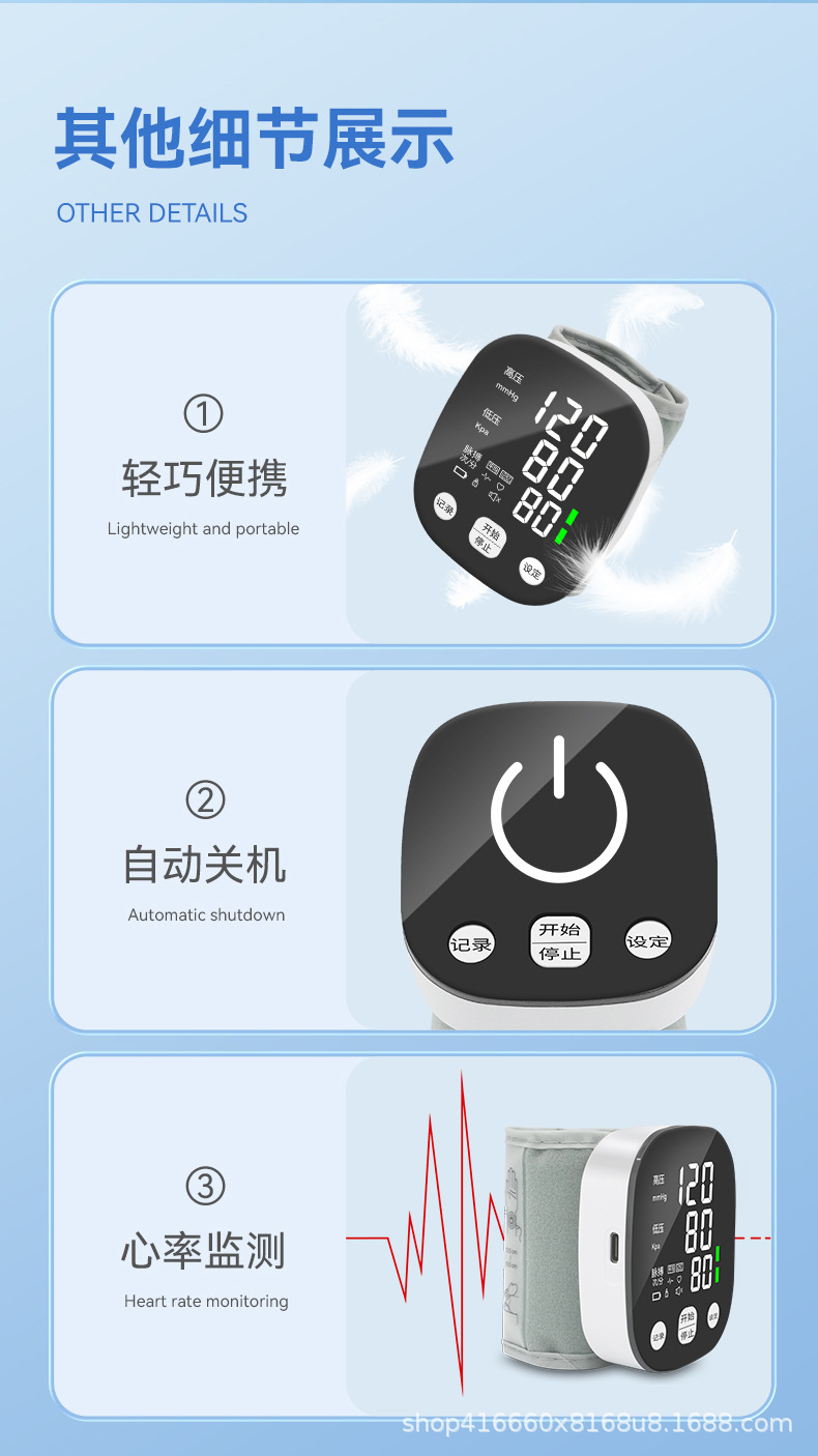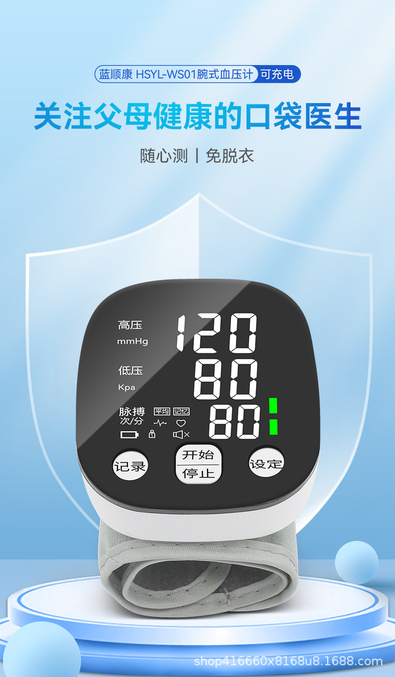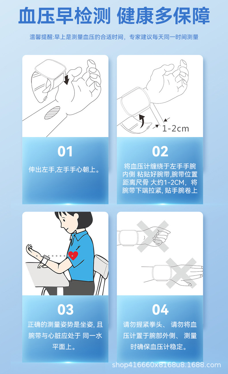 6. 精度: 血压: ±3mmHg(±0. 4kPa)以内 脉搏: 读数的±5%以内 7. 供电方式:内置锂电600mAh或Type-C充电线