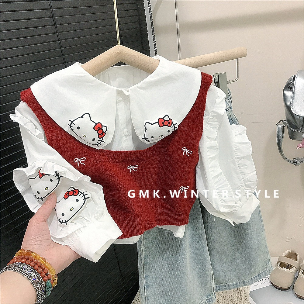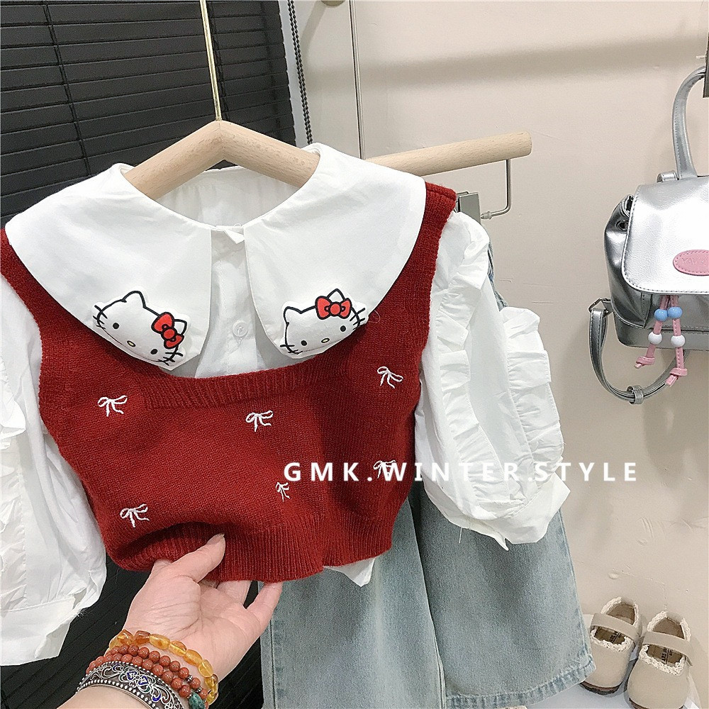 소녀 세트 봄 새로운 스타일 유행 아기 셔츠 봄과 가을 어린이 조끼 청바지 넓은 다리 바지 대외 무역스토어 가기