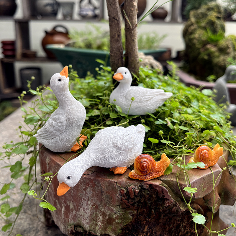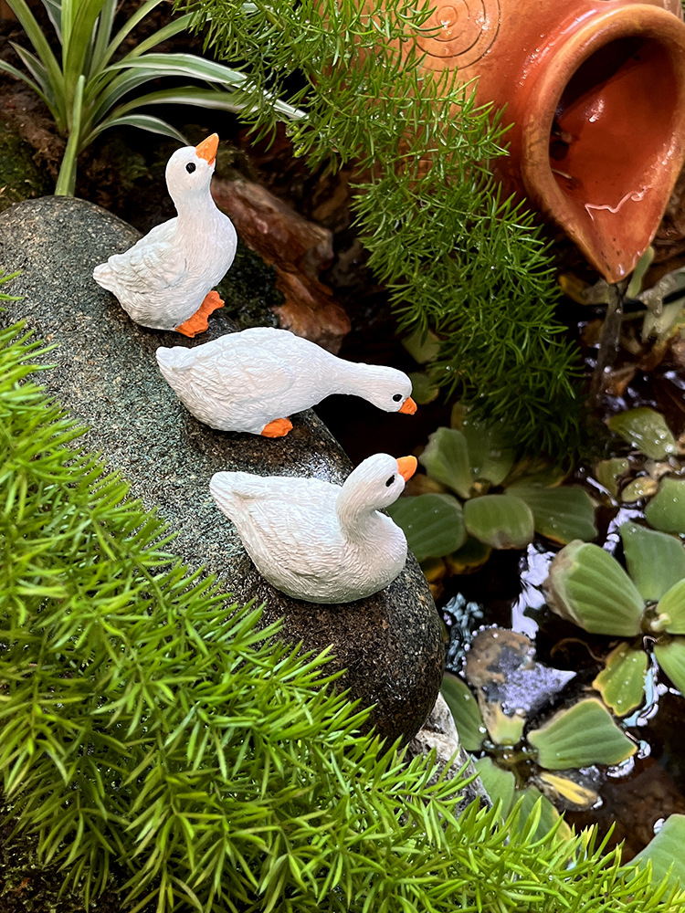 미니 흰 오리 동물 장식품 정원 안뜰 화분 어항 수경 조경 미니어처 가짜 산 야외용스토어 가기