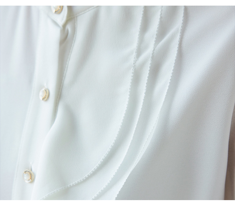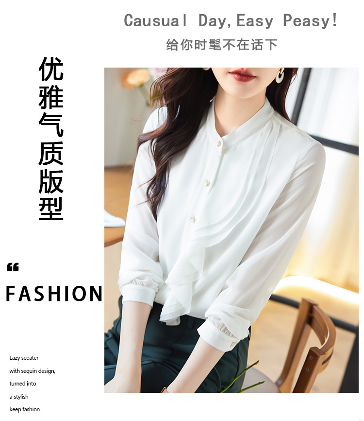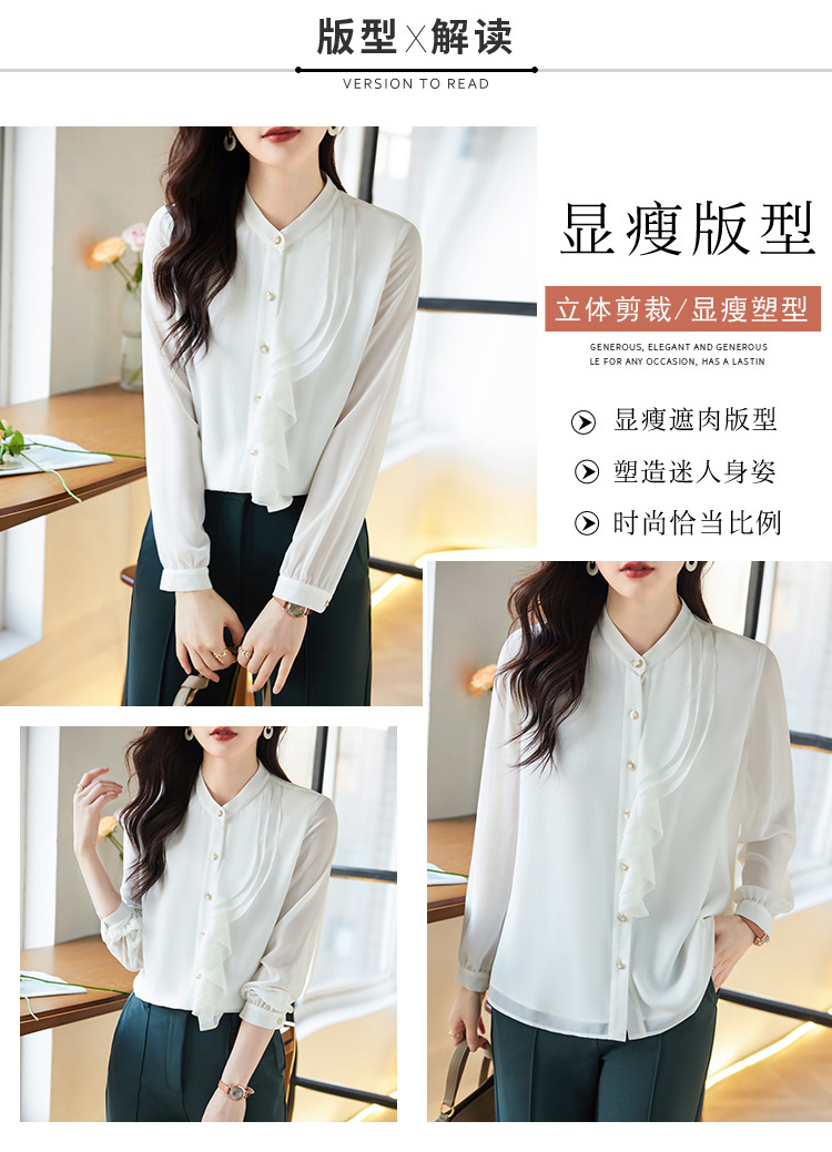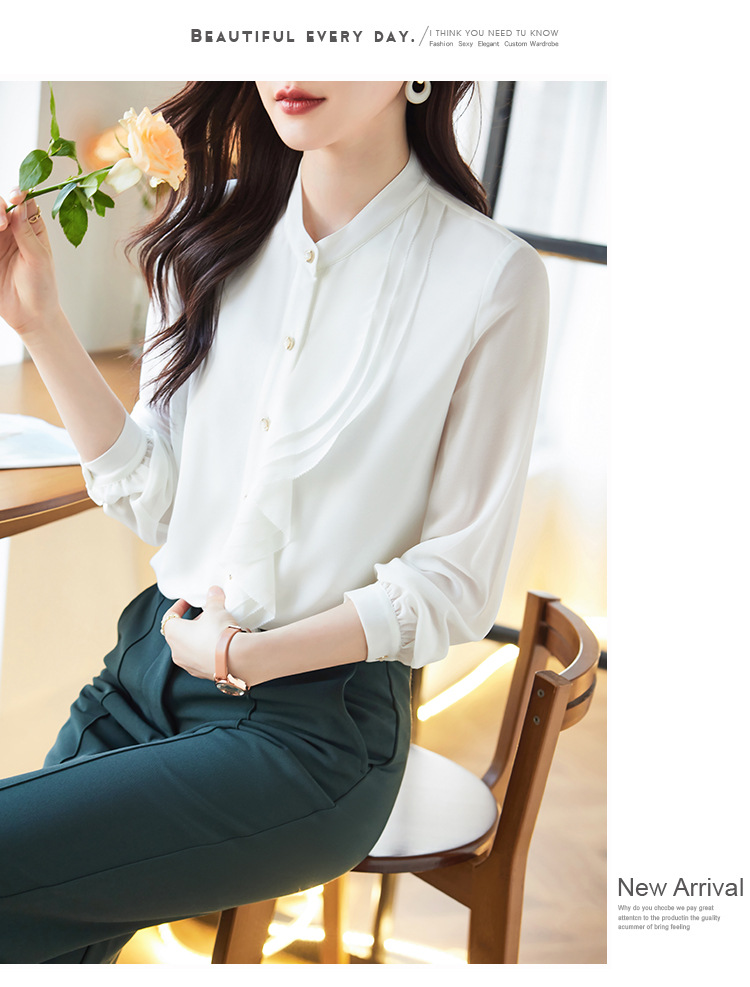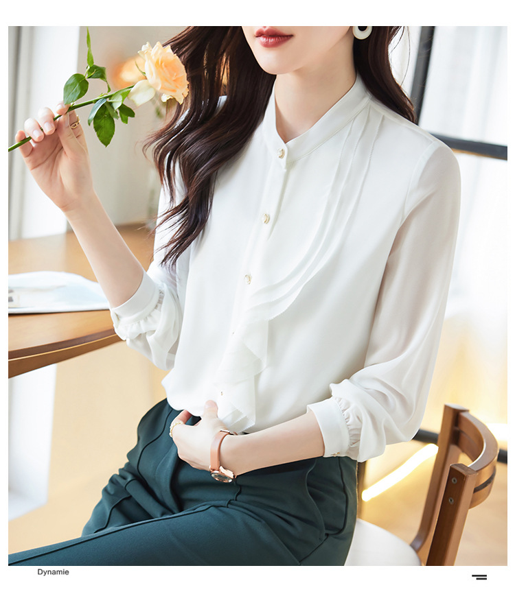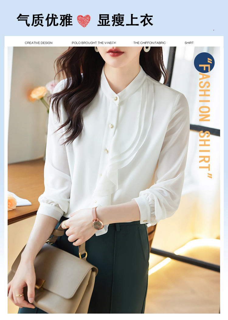 라이닝으로 리얼 샷 2025 봄 새 셔츠 화이트 러플 여성 셔츠 유행 슬림 통근 탑