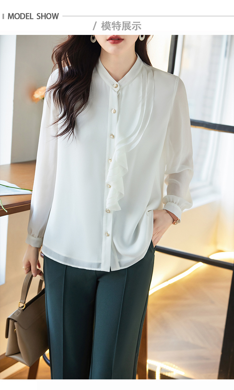 라이닝으로 리얼 샷 2025 봄 새 셔츠 화이트 러플 여성 셔츠 유행 슬림 통근 탑스토어 가기