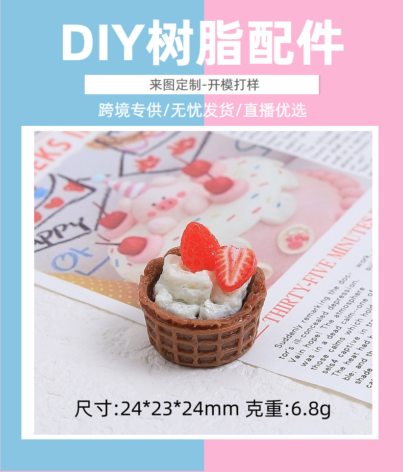 입체 딸기 바구니 장난감 창의적인 수제 DIY 크림 글루 레진 액세서리 소품 재료 도매