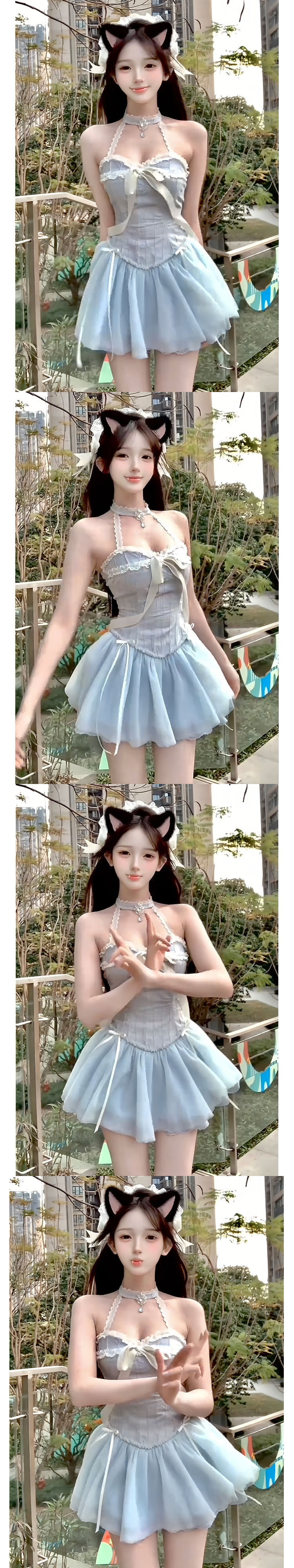 순수한 섹시한 달콤한 스파이스 소녀 슬림 핏 목 원피스 여름 새로운 한국식 발레 슬림핏 공주 스커트 짧은 치마스토어 가기