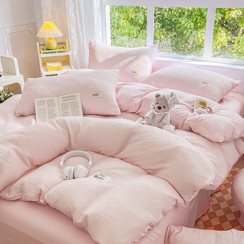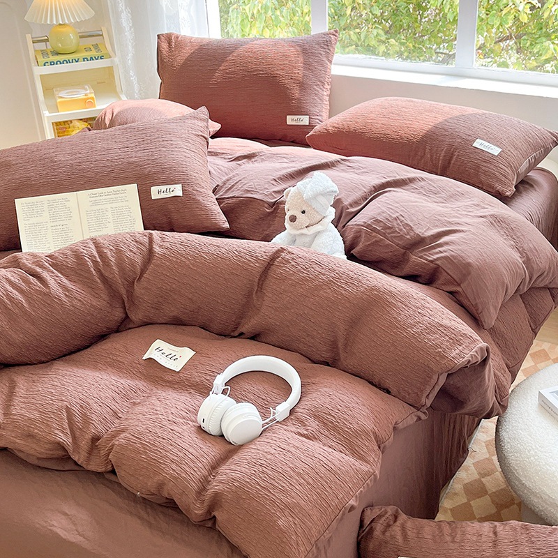인 스타일 솔리드 컬러 세척 코튼 4 피스 세트 솔리드 컬러 퓨어 코튼 침대 시트 퀼트 커버 주름 사우어 빨커 침대 커버 3 피스 세트