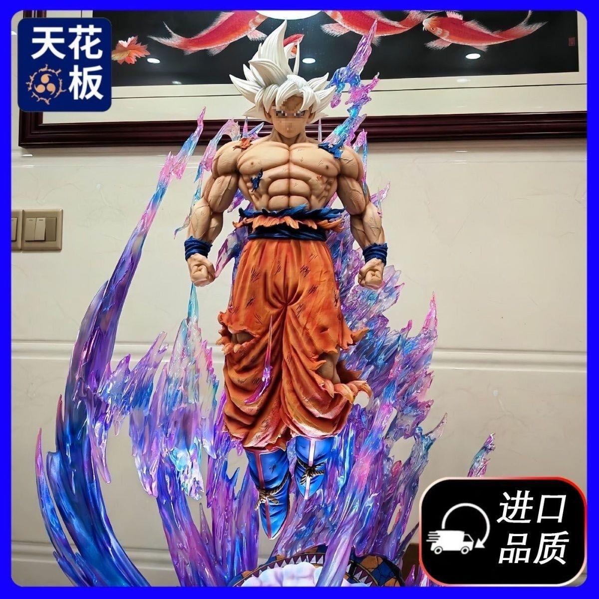 드래곤 볼 LS 무료 및 극단적 인 Ionking Wukong 화이트 헤어 각성 Wukong GK 수제 동상 모델 장식품 조명스토어 가기