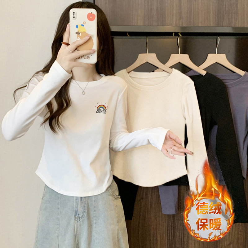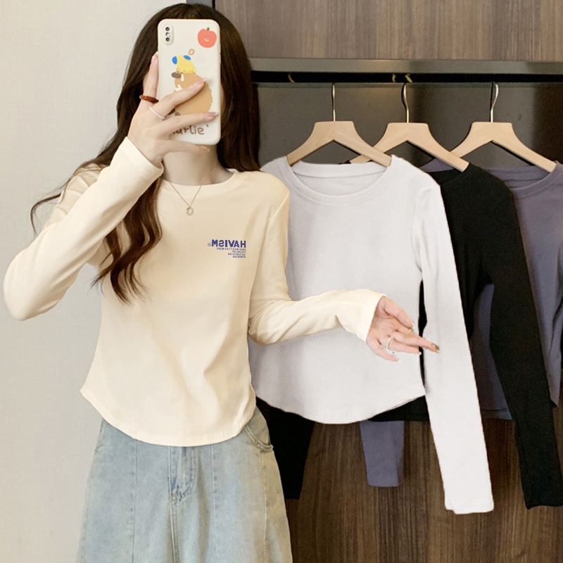 13 라인 여성 내부 라운드 넥 탑 가을 올 매치 긴팔 티셔츠 슬림핏 곡선 서양식 시대 감소 베이스 셔츠스토어 가기