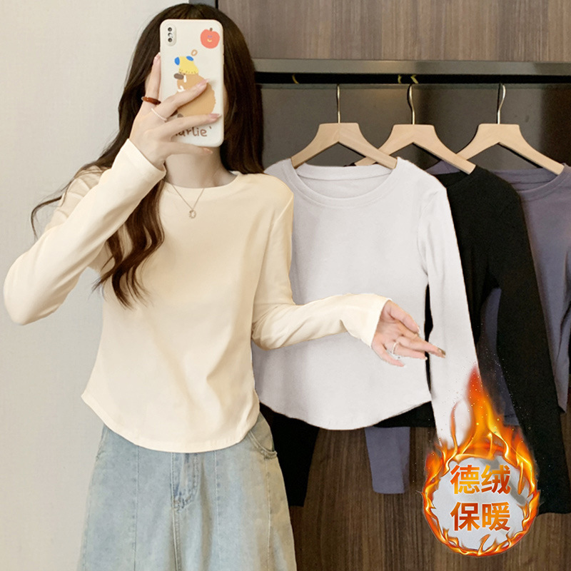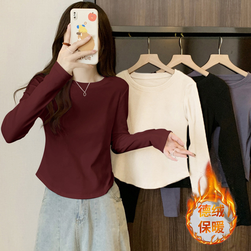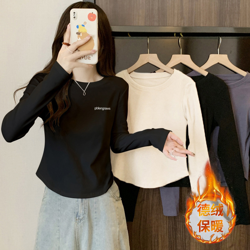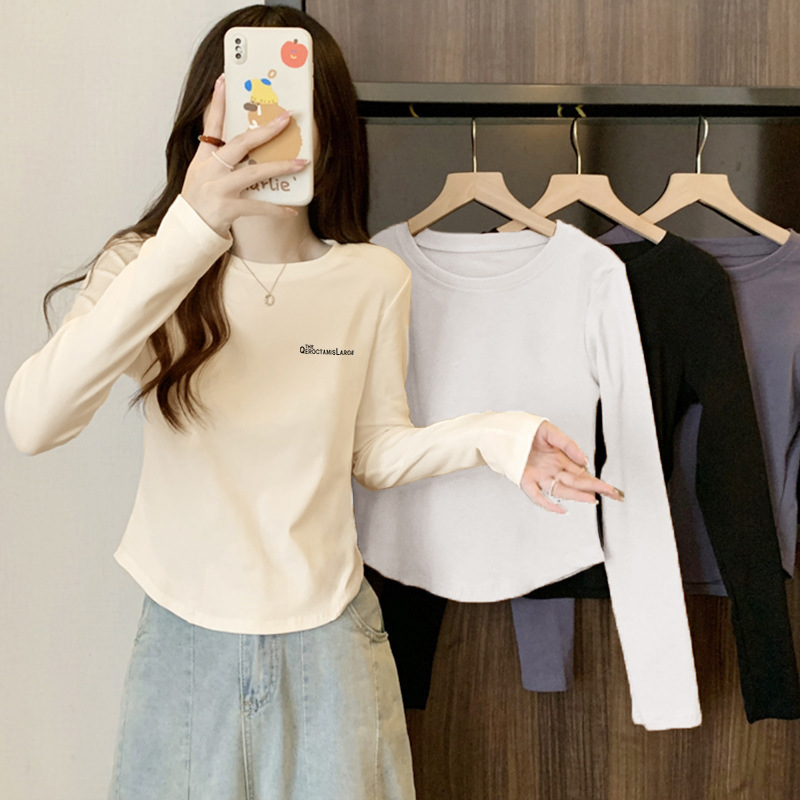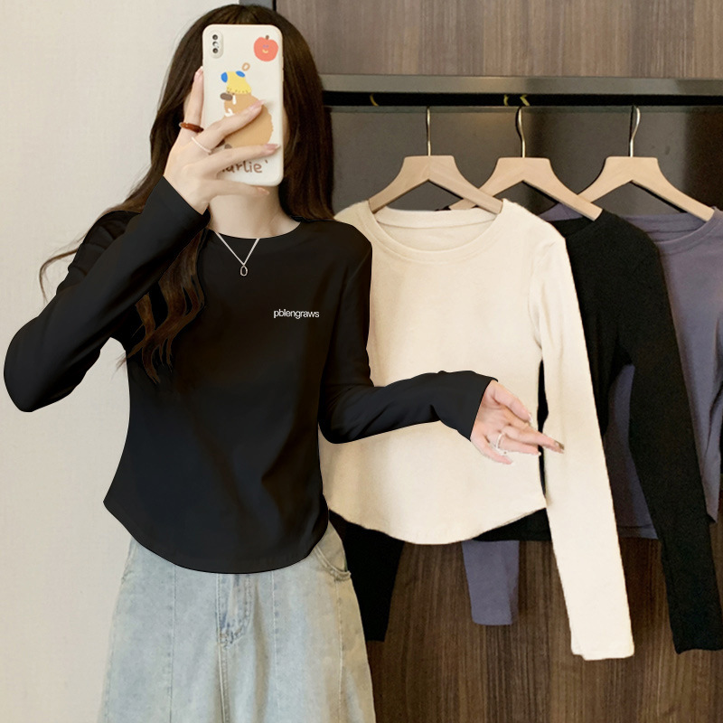 13 라인 여성 내부 라운드 넥 탑 가을 올 매치 긴팔 티셔츠 슬림핏 곡선 서양식 시대 감소 베이스 셔츠