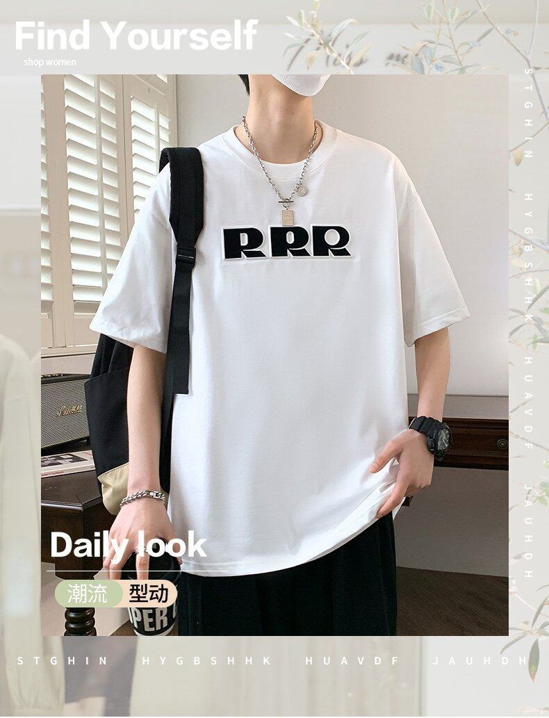 국경 간 무역 세대 AliExpress 인기 남성 의류 [신규] 여름 캐주얼 패션 티셔츠 남성용 반팔 바닥 셔츠스토어 가기