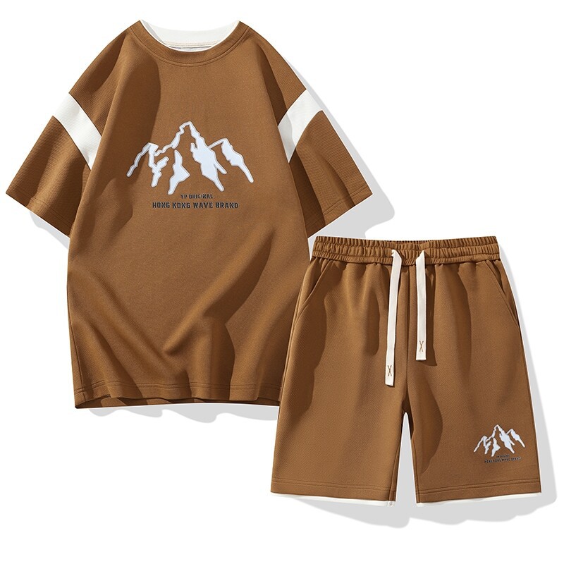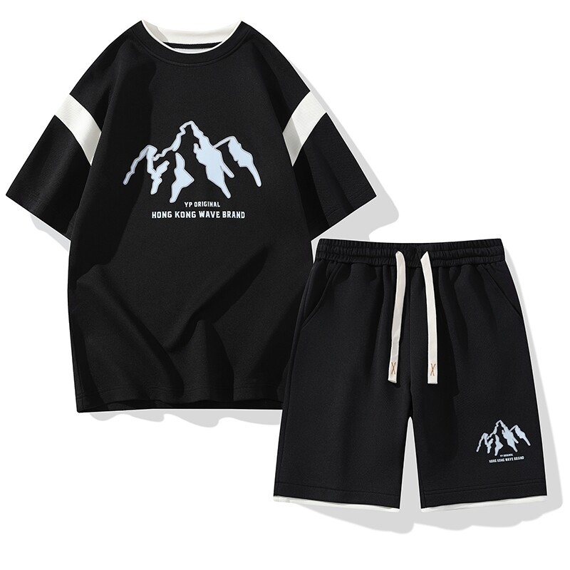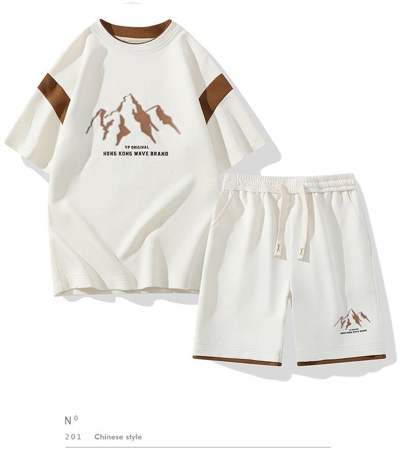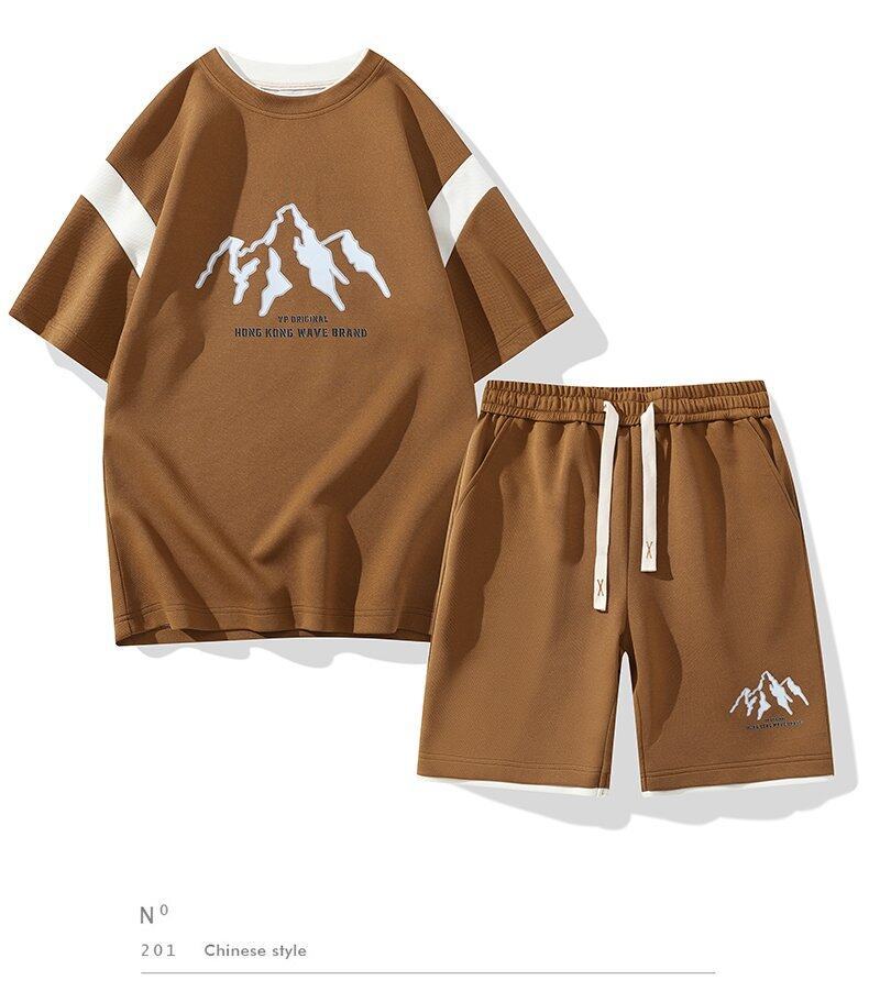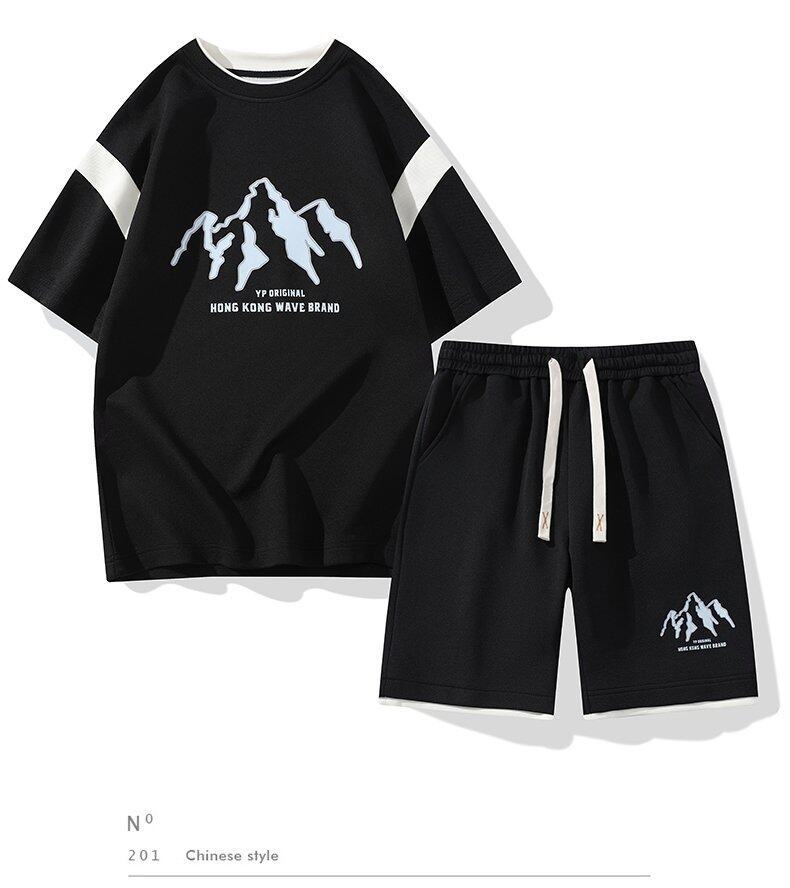 국경을 넘는 대외 무역 세대 AliExpress 폭발 남성 "2025 년 여름 패션 티셔츠 반바지 세트 남성 투피스 세트