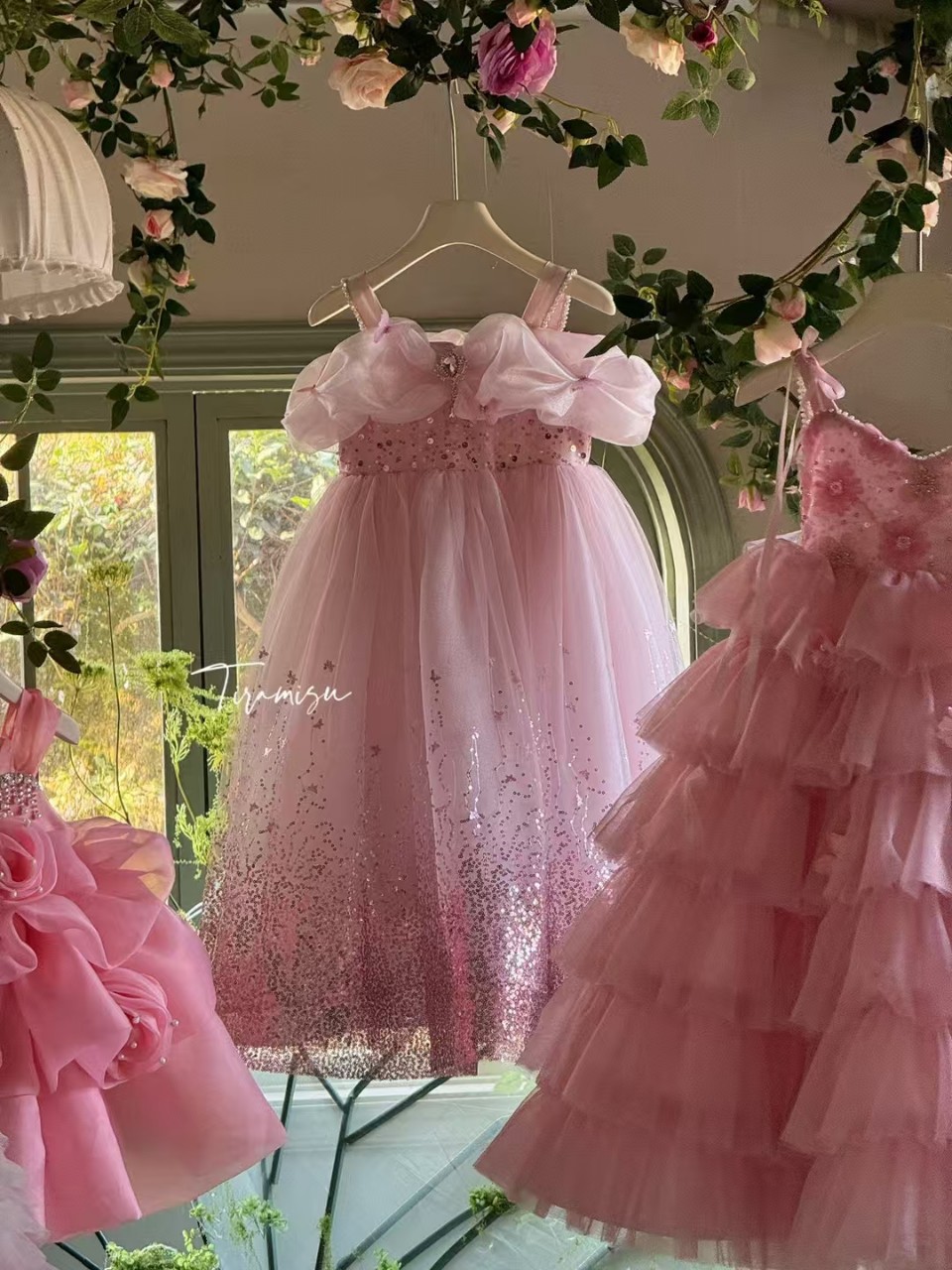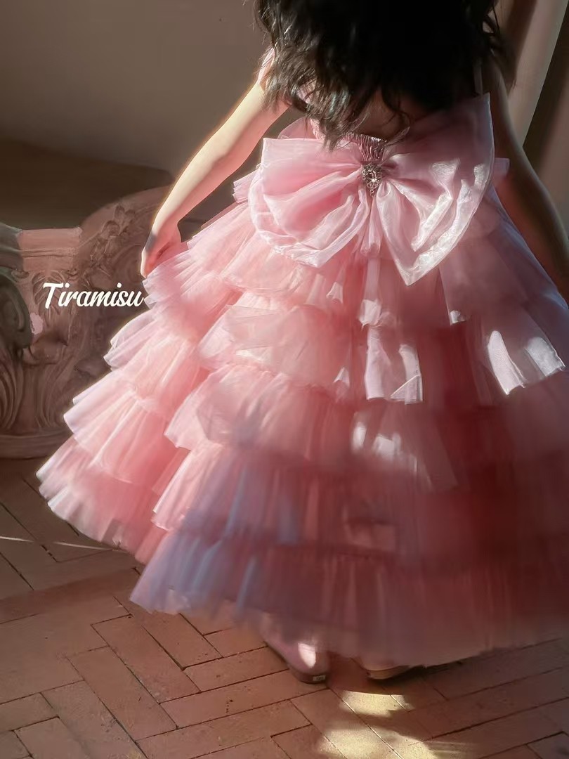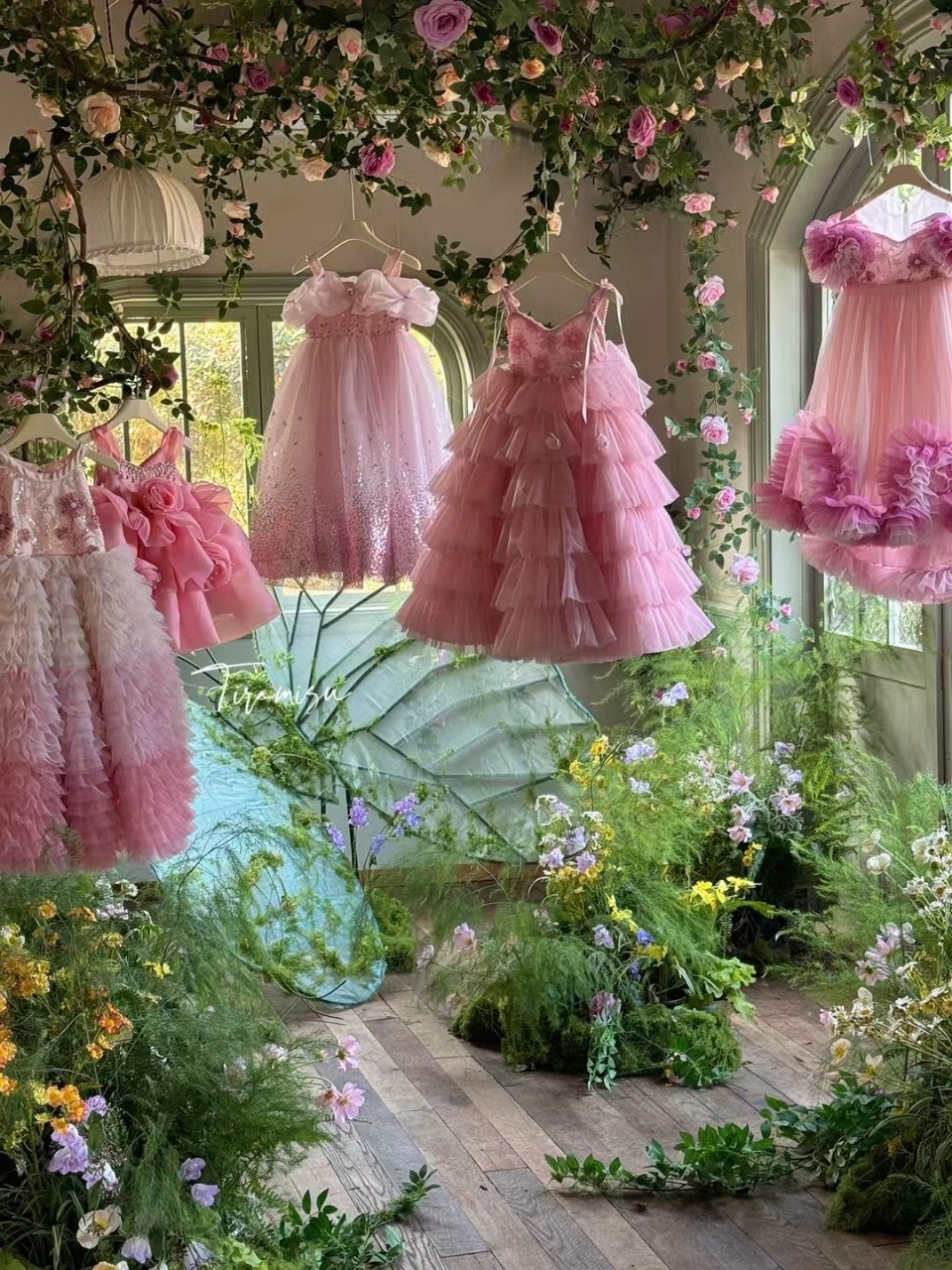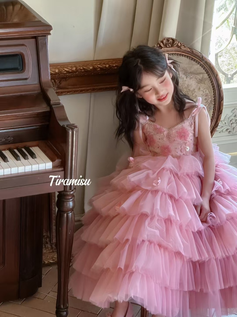 높은 세트 원피스 2025 봄과 여름 새로운 어린이 공주 원피스 소녀 케이크 원피스 생일 메쉬 원피스 스커트