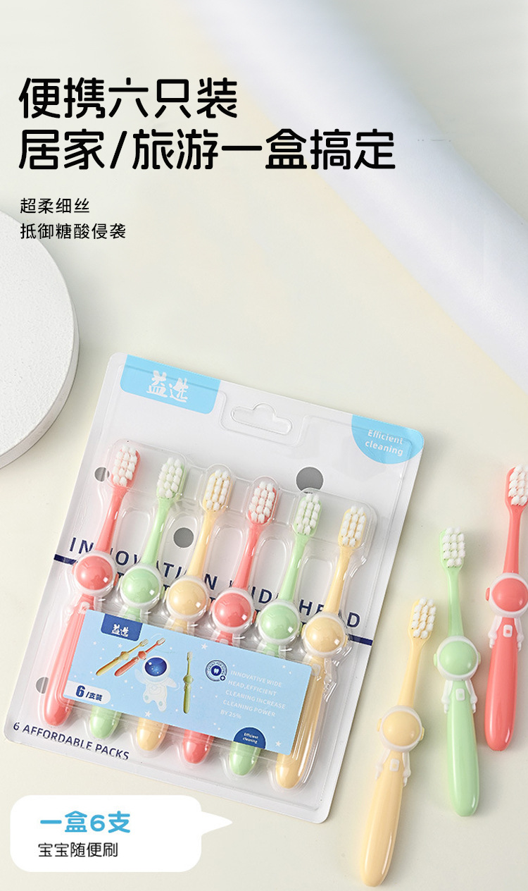 새로운 샘 같은 우주 비행사 어린이 6 팩 3-6-12 세 아기 넓은 머리 부드러운 강모 칫솔 공장 도매스토어 가기