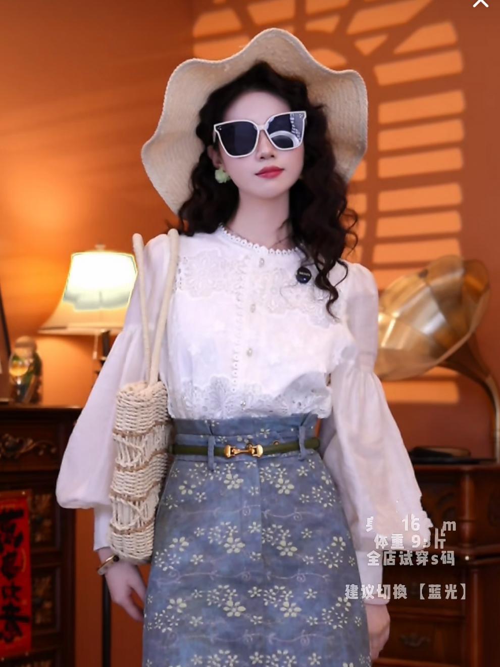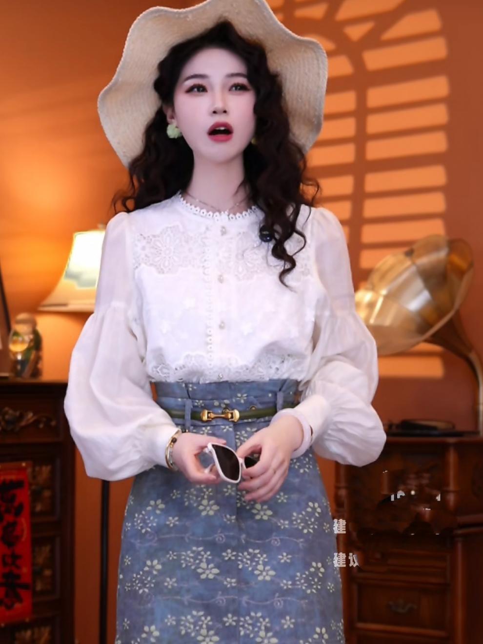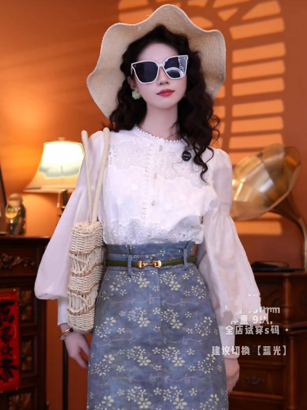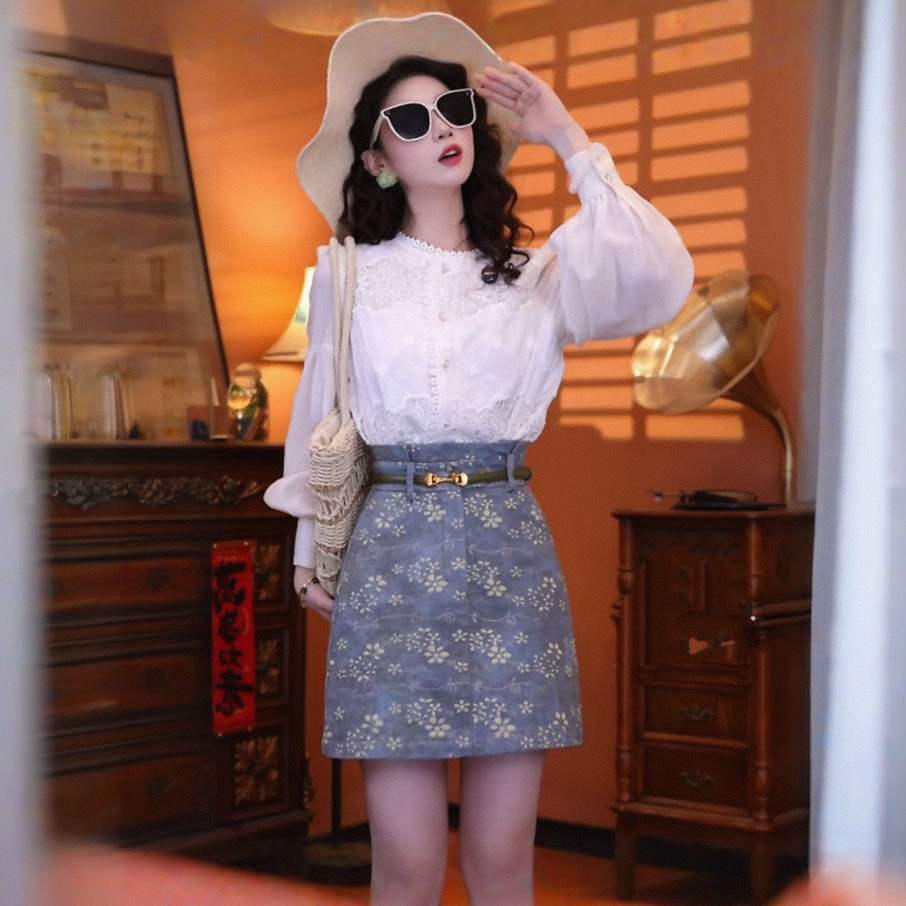 홍콩 스타일의 복고풍 기질 쉬폰 셔츠 셔츠 하이 웨이스트 스커트 쇼트 스커트 2025 세트 착용