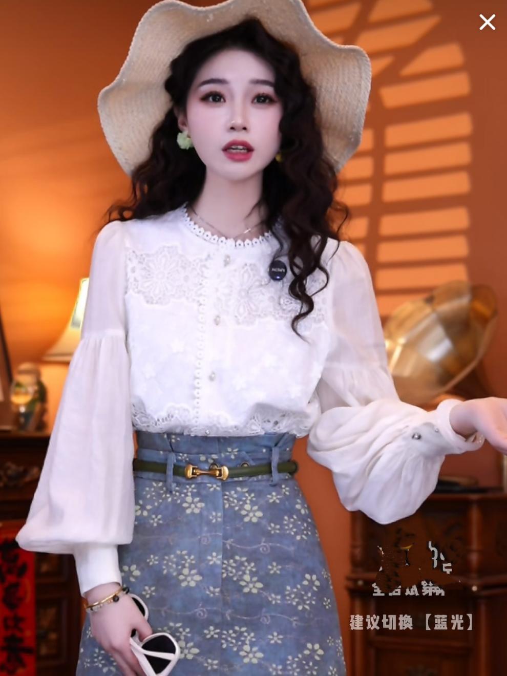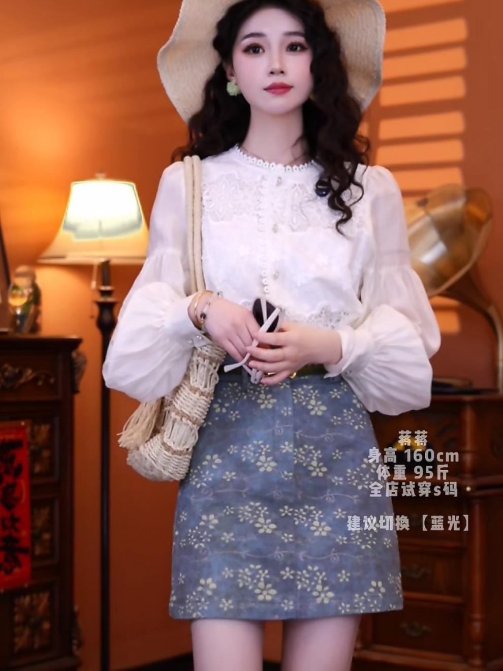 홍콩 스타일의 복고풍 기질 쉬폰 셔츠 셔츠 하이 웨이스트 스커트 쇼트 스커트 2025 세트 착용스토어 가기