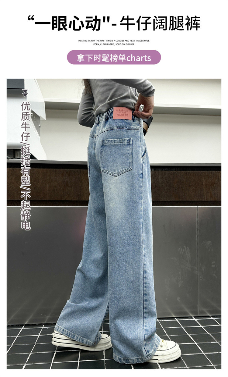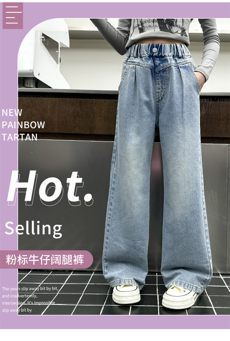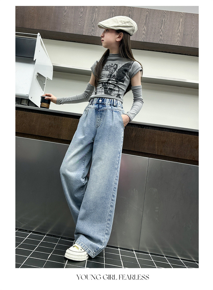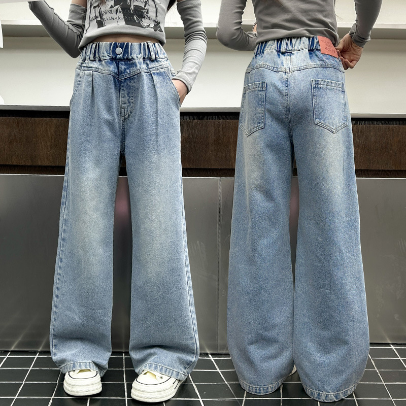 소녀 청바지 2025 봄 새 스타일 중대형 어린이 긴 바지 어린이 봄과 가을 스트레이트 다리 바지 느슨한 캐주얼 바지